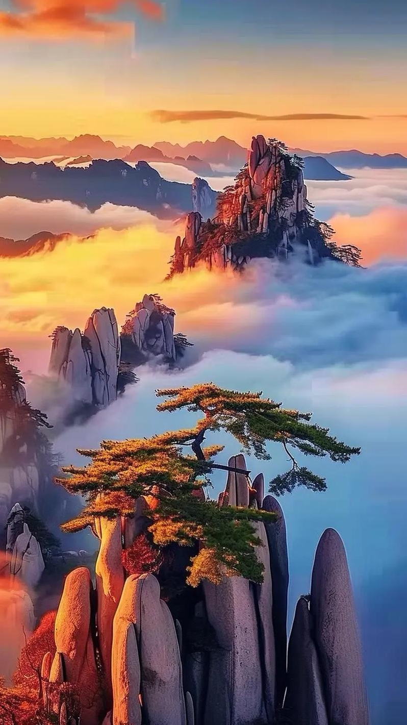 黄山云海一年中有200多天云雾缭绕,形成东海南海西海北海和天海五大云海奇观,山峰在云海中若隐若现,宛如仙境。