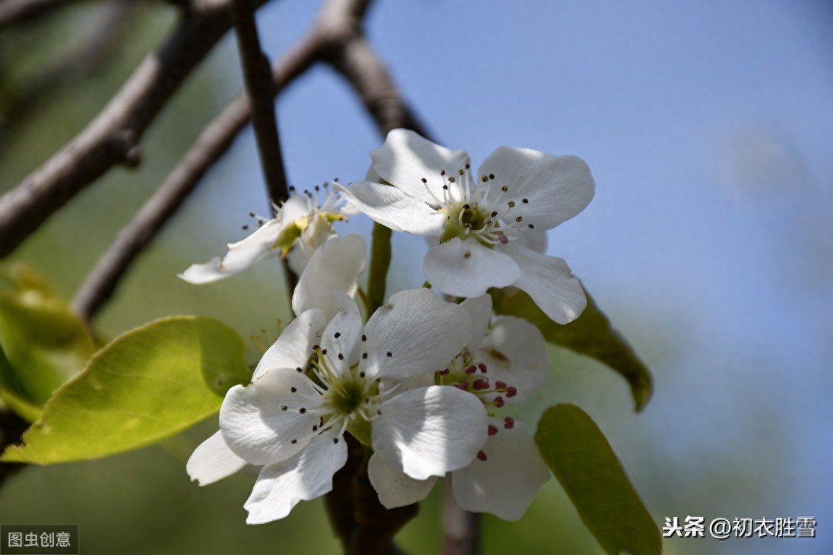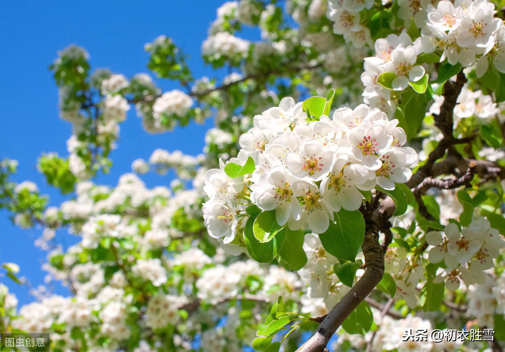 ”寒食花开千树雪,清明日出万家烟。“唐朝的王表正是对寒食节日,清明节气和梨花关系的表述。在寒食节日里,梨花开满了千万树。当然在寒食这天是要禁火的,要到次日的清明才可以做饭炊烟。梨花也就在这寂静的寒食日特别的肃穆清朗。