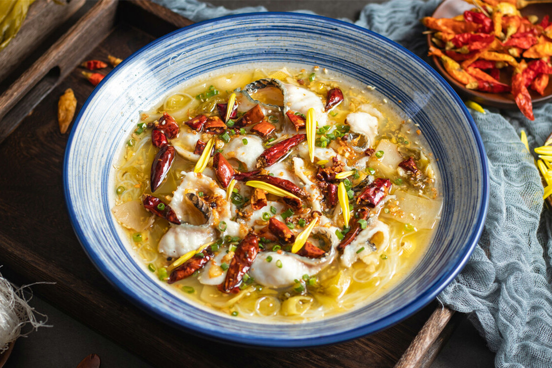 1、鱼头、鱼尾、鱼鳍斩下备用,酸菜用清水冲洗,捏出水分,切大段。2、将鱼片成鱼片,放入大盆中,加入米醋,搅拌均匀后,用清水冲洗。3、盆中加入鱼肉、鸡精、米醋、黑胡椒粉、红薯淀粉,蛋清,顺时针搅拌至上浆。4、炒锅中加入适量的油,油热加入葱、姜、蒜及干辣椒,爆香后加入酸菜,翻炒均匀盛出备用。5、炒锅加适量油,将鱼头,鱼骨,鱼尾等部分全部放入锅内煎。加入热水和炒好的酸菜,葱、姜、料酒、米醋、鸡精、泡山椒煮至汤色变白。6、将锅中的所有食材捞出盛入盆中,锅中鱼汤加入腌好的鱼片汆熟捞出,盆中加汤汁,撒上蒜末、白芝麻,淋上热油即可。