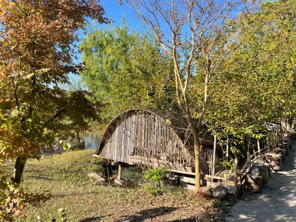 农场“大本营”则设计成“一撇一捺”,为的是抵抗台风。农场中,大多数建筑用的是竹子和芦苇,都是崇明本地找得到的材料。