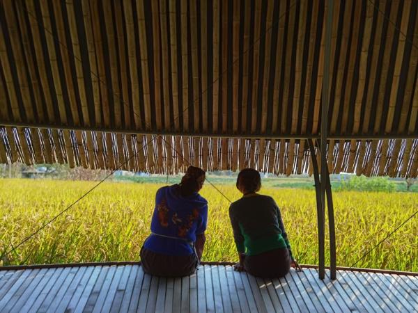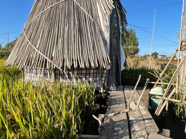 另外,人的需求也要与农业劳作的需求紧密结合。例如,椿庭的卫生间都藏在稻田中,竹子围成锥形屋顶,崇明土布围挡,马桶管道连接着地下联动的发酵池,为稻田和菜地补给肥力。