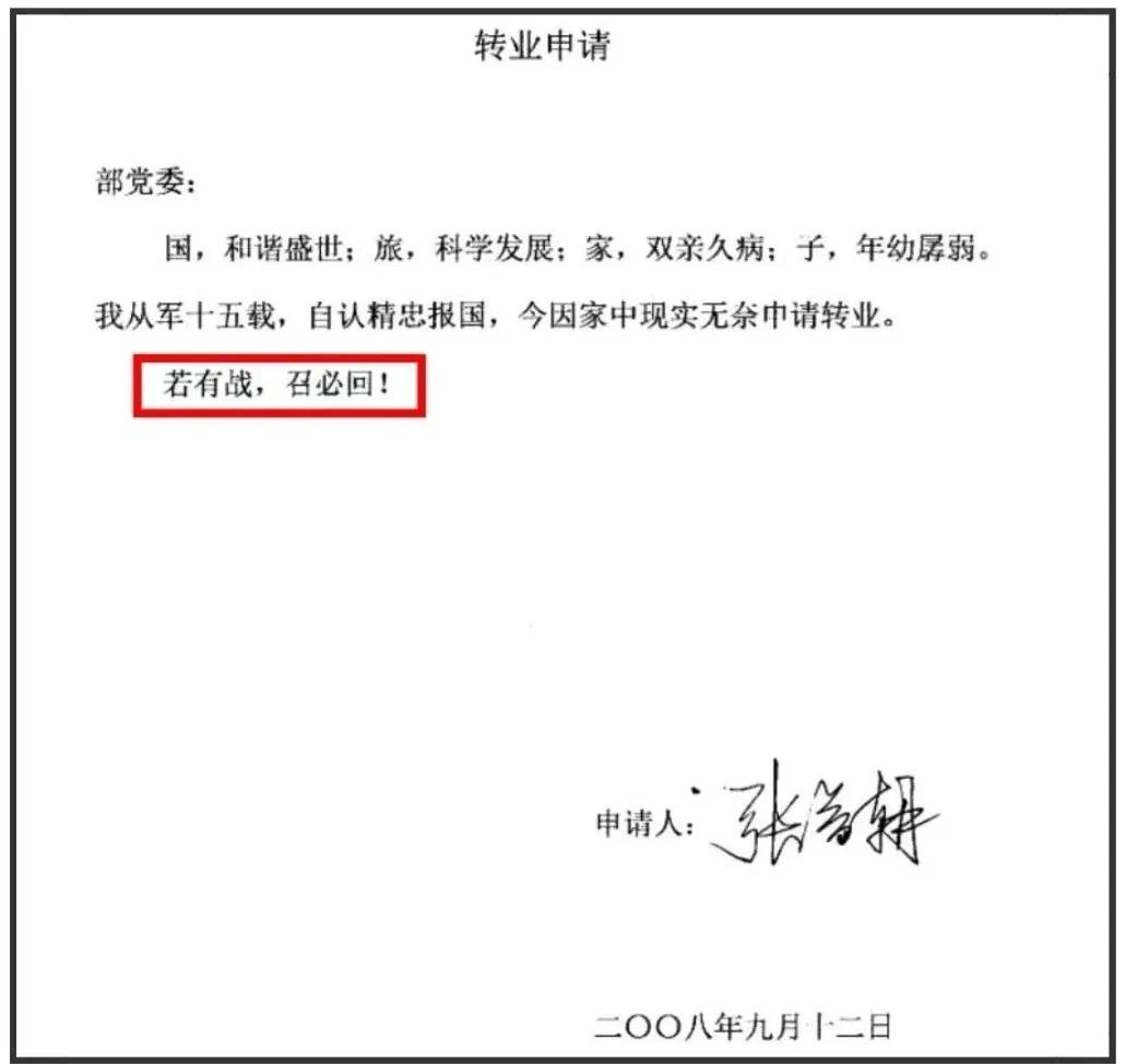 张益朝转业申请 图据央视新闻