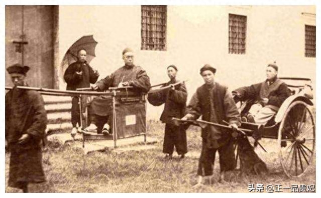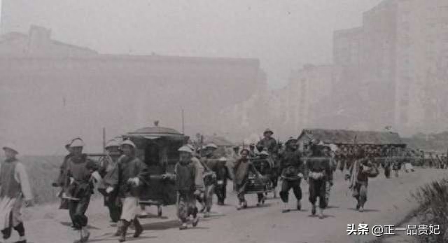 这是一张晚清时期的照片,图中的轿子与黄包车形成鲜明对比。