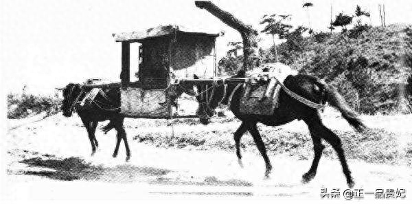 相比于人力轿,“骡驮轿”最大的特点就是速度快,但舒适度也大打折扣。图为晚清时期的“骡驮轿”。