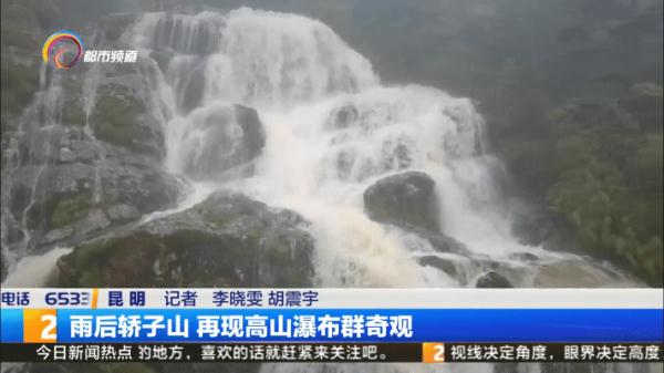 昆明轿子山旅游开发有限公司副总经理 邢开超:“特别是在下坪子区域,有上百条瀑布在一个平面上,非常的壮观,应该是在滇中都没见过这么壮观的景象,今天把我们都震撼了,非常的兴奋,因为你听电话里的水声,我在距离瀑布五六十米的地方,有那么大水声。”