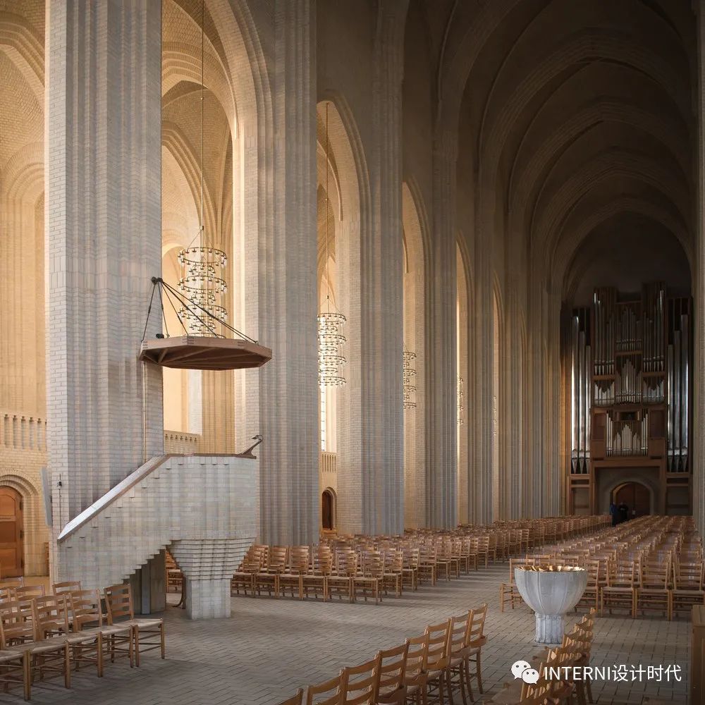 在哥本哈根郊外的山顶上,有一座由600万枚黄砖组成的表现主义经典建筑。1921年以前,这里曾经是一块黑麦田,现在是丹麦最大,最令人难忘的教堂之一——格鲁特威教堂(Grundtvig's Church)。它由丹麦建筑大师詹森·克林特(Jensen Klint)设计,是为了纪念一位19世纪著名的丹麦牧师,哲学家,历史学家,赞美诗人格鲁特威而建造。