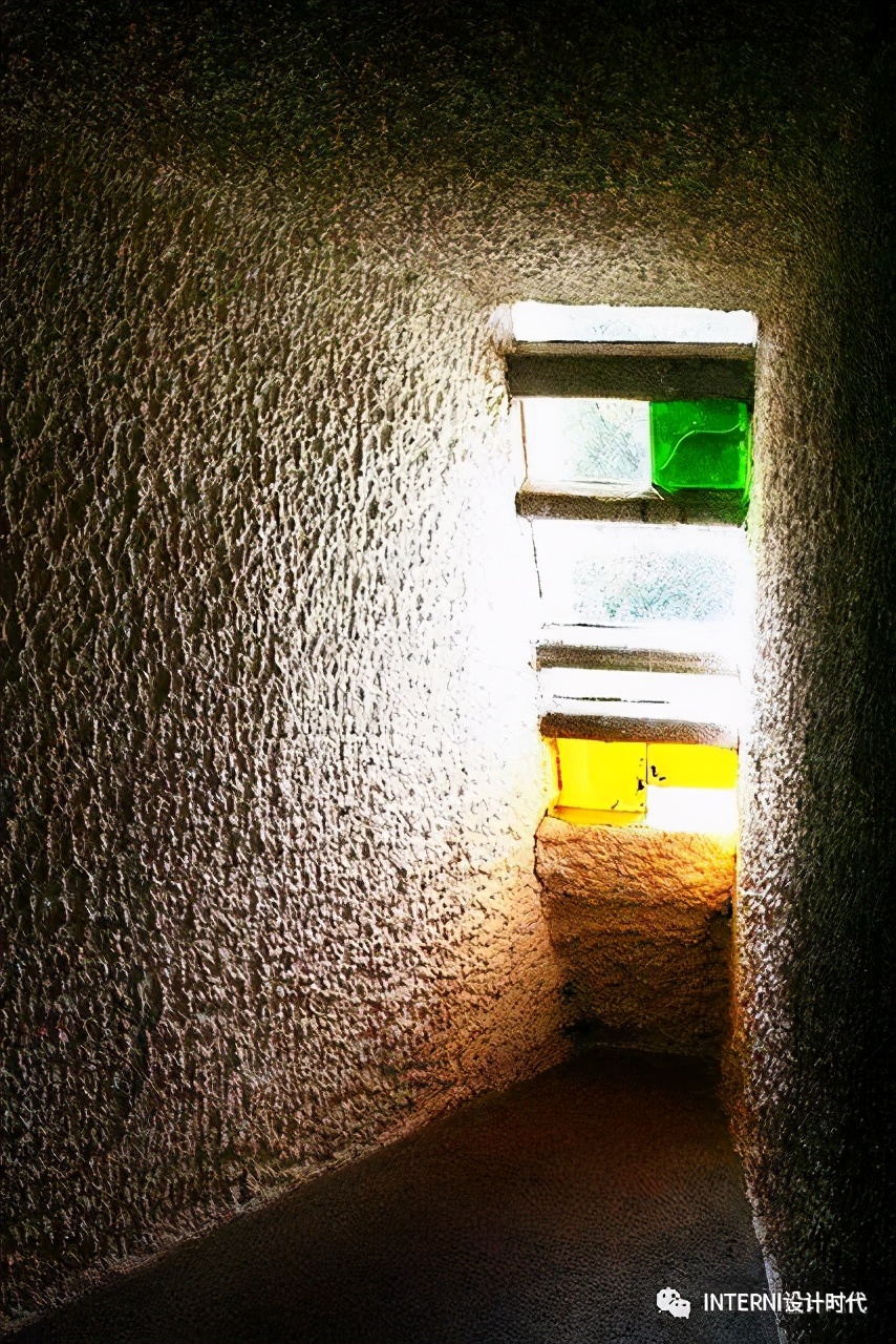 流线型的设计将于整座教堂巨大且厚重的特质贯穿,让它看起来十分轻巧。设计中最有趣的部分还是那些分布在墙上的零星窗口。设计师采取了在立面上开孔的方法,通过夹层墙间的锥形窗以增强礼拜堂内的光线。每一堵墙都被大小各异的方窗照亮,光照效果产生了斑驳的图案,就像星光闪闪的夜空。