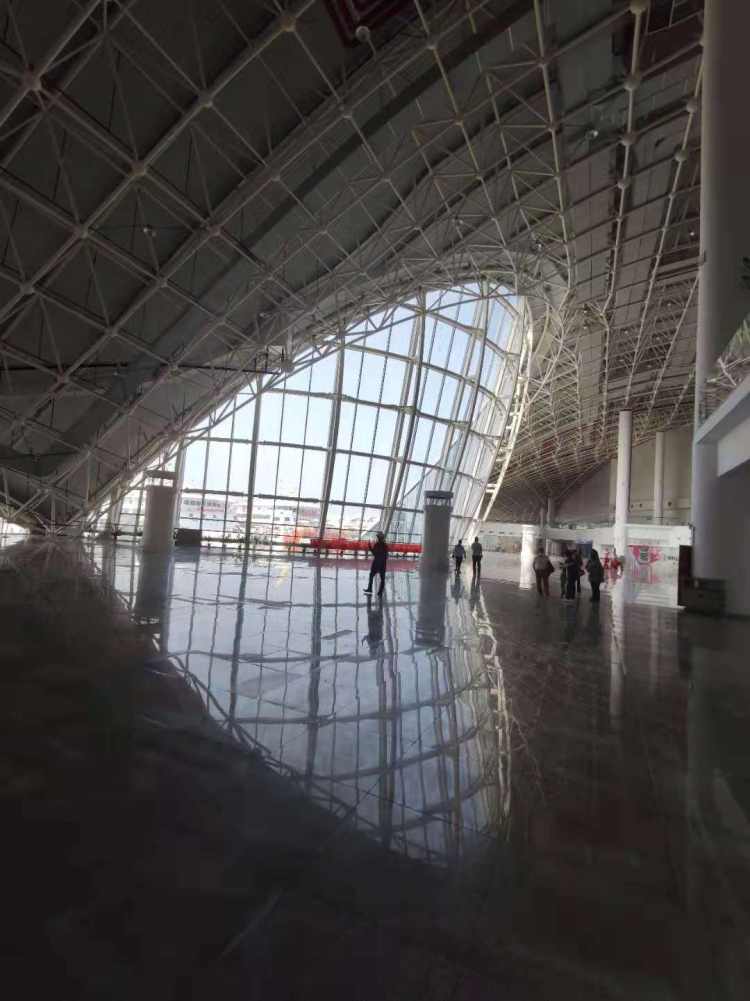 徐闻港,焕然新生,迎风而立。整个港口大楼形似一架面朝海南的巨型飞机,“翼展”长达 1 公里以上,外围还通过填海造陆的形式修筑了防波堤,以减少海浪的侵袭。