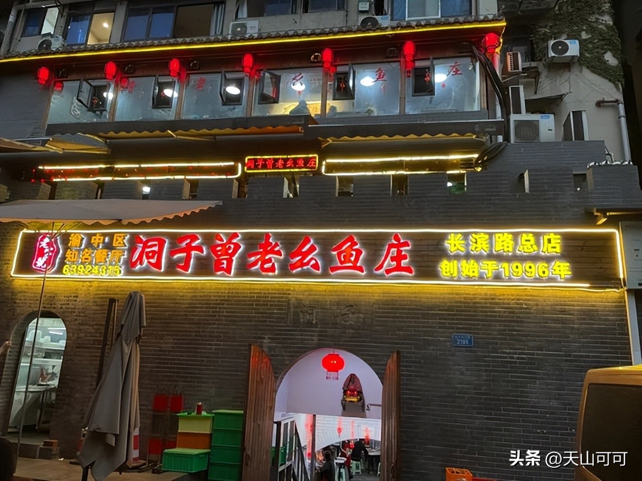 防空洞里吃鱼,是重庆人才懂的浪漫。**邮亭鲫鱼**用泡椒泡姜烧制,鱼肉细嫩无腥,汤汁拌面堪称一绝。洞内冬暖夏凉,墙上挂着老重庆照片,吃着吃着仿佛穿越回上世纪。推荐加份**排骨香肠**,烟熏味与鱼鲜碰撞出奇妙火花。