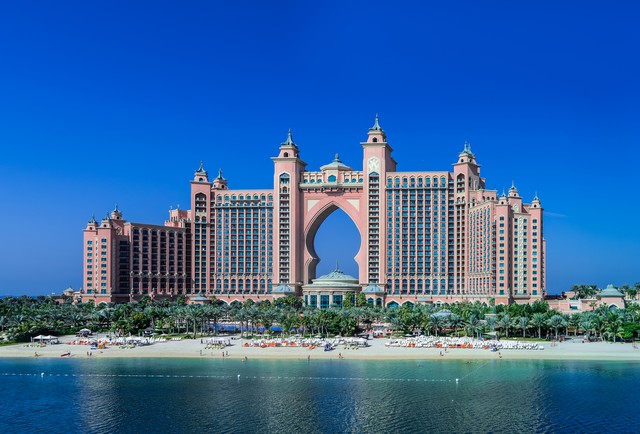 - 上午:探索朱美拉棕榈岛,这个被誉为"世界第八大奇迹"的人工岛。搭乘观光轻轨环岛游览,欣赏两侧豪华别墅和酒店。在棕榈岛顶端,你可以参观著名的亚特兰蒂斯酒店,免费穿越其壮观的大堂与巨型水族馆长廊。