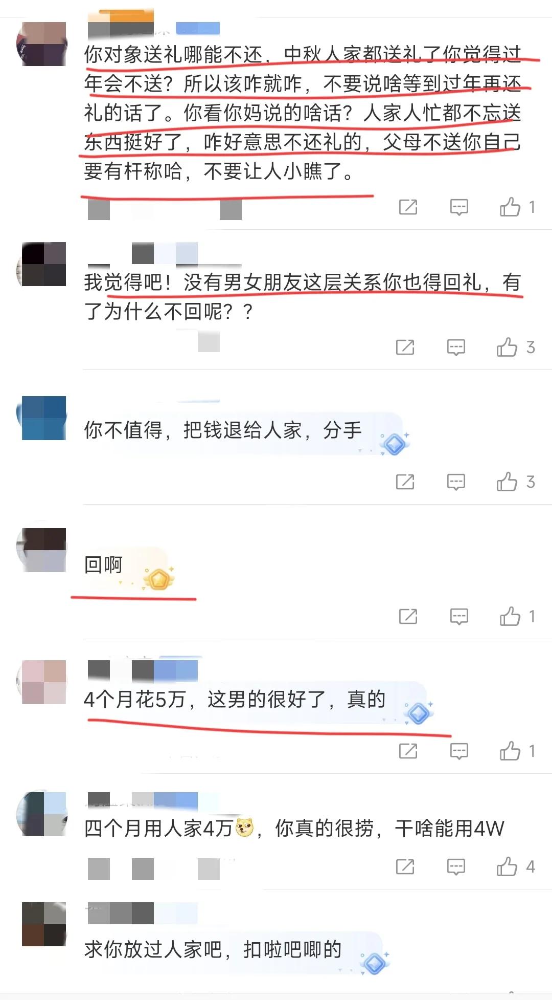 “恋爱4个月,就花了男朋友4万块钱,现在连回个礼意思意思都要纠结,连对对方最起码的尊重都没有,还好意思说‘会不会显得上赶着’?”