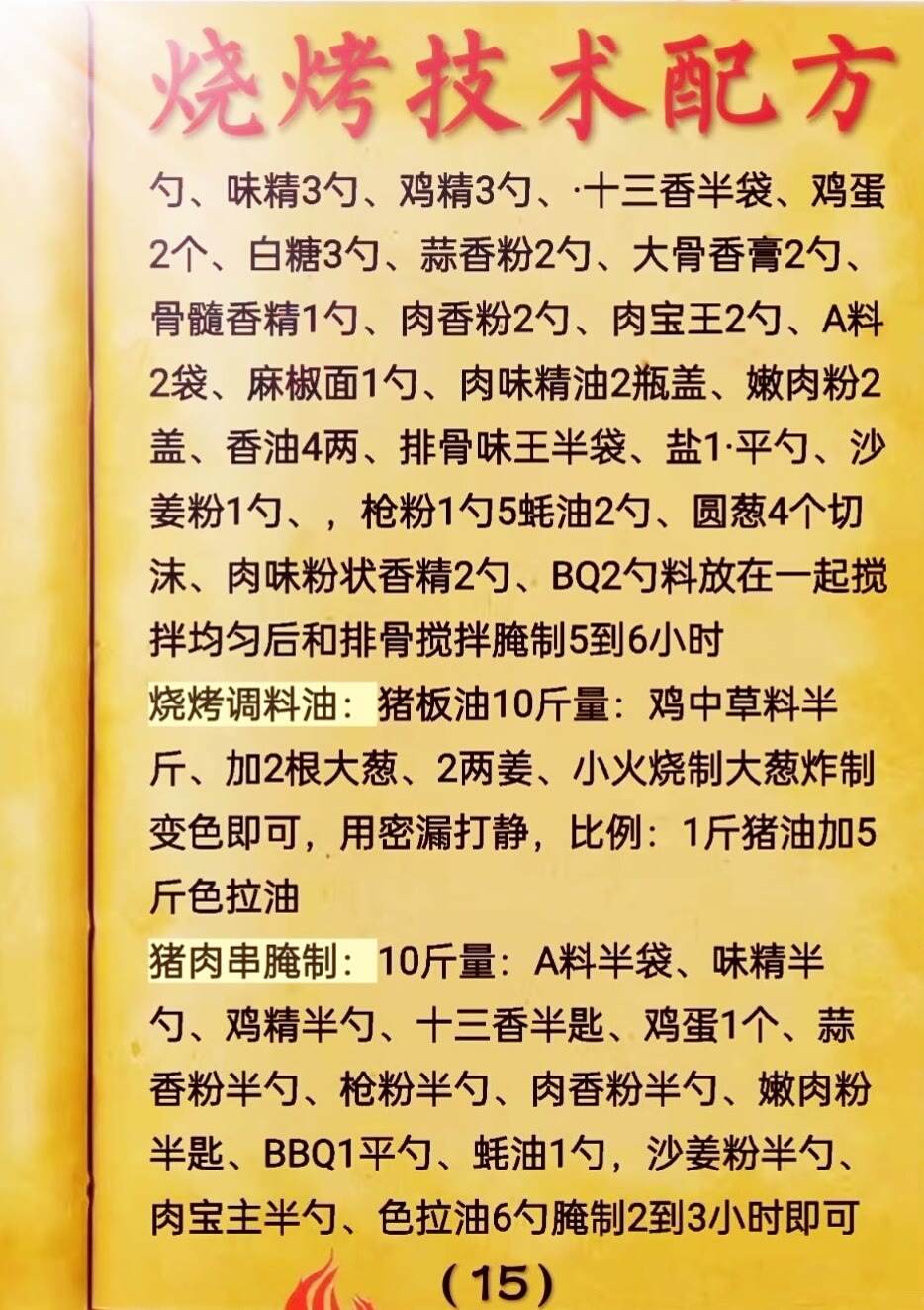 资深烧烤师傅 | 2-3 | 1. 按订单高效制作烤品(专注某类品类,如 1 人烤肉类、1 人烤海鲜、1 人烤素菜,分工细化); 2. 配合主管执行口味标准(严格按配方刷酱、撒料); 3. 带教新师傅(指导控火、处理食材的技巧)。 | 1. 3 年以上经验,擅长某类烤品(如烤海鲜需懂 “鲜活度判断”,避免烤老); 2. 出餐速度快(高峰时每分钟能出 10-15 串); 3. 服从管理,能稳定执行标准。 |