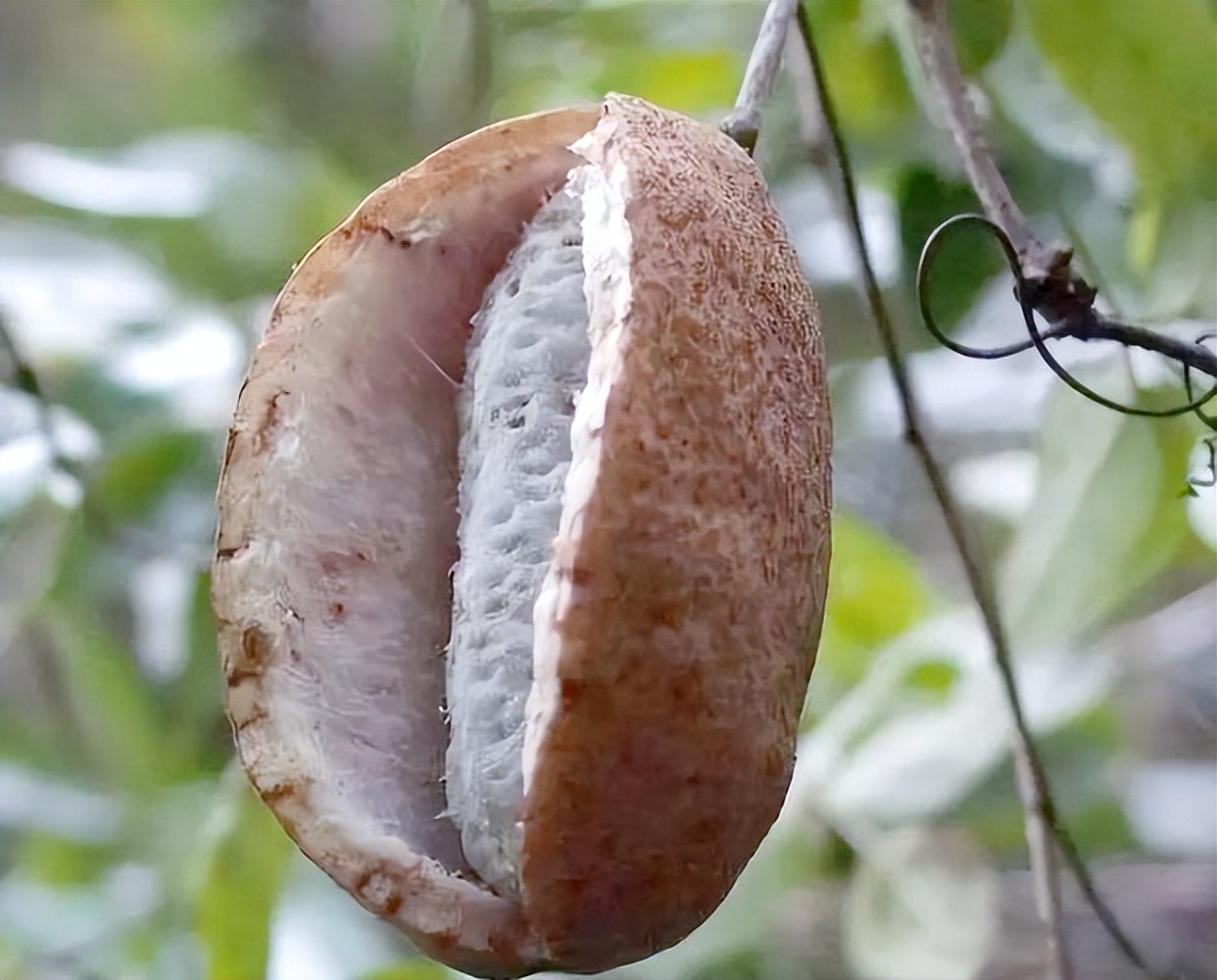 它的茎与枝有明显的线纹,因子呈卵形,掌状复叶,叶片近革质,八月瓜果实开始是青色的,到了秋季的时候就慢慢的变黄,因此在湖南叫它黄桃,成熟以后会自动炸裂,露出里面的肉跟种子,这个时候就非常好吃了。它4到5月份开花,7到9月份果实成熟。