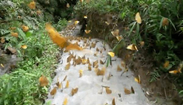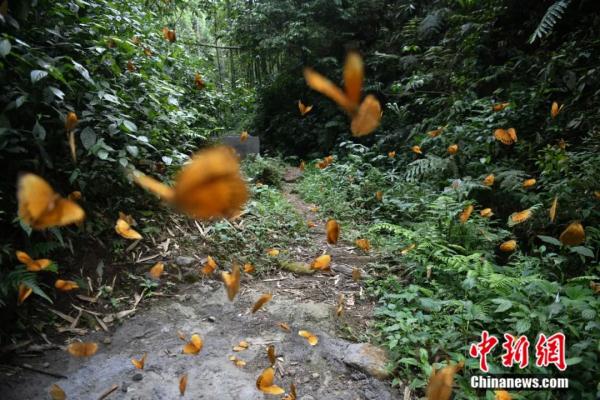 每年初夏时节,蝴蝶谷都会出现蝴蝶聚会的盛况。根据对蝴蝶谷内23处观察地蝴蝶幼虫和蛹的观测,今年爆发数量将达1.5亿只以上。现在,在蝴蝶谷连绵的群山间、飞流直下的瀑布旁、茂密的山林里,大量蝴蝶破茧而出,翩翩起舞,宛如一片金色海洋。
