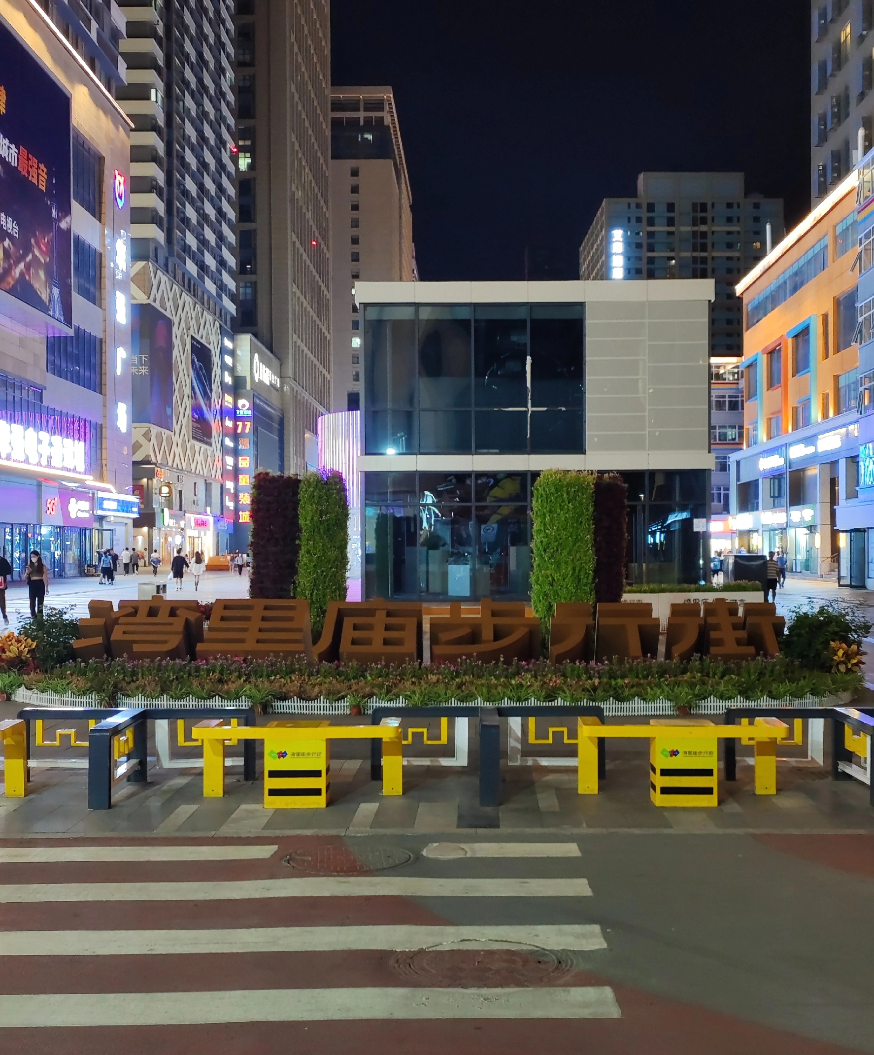 最后说说湾里庙步行街。这是河北省唯一入选全国示范步行街的街区,就在城市核心商圈,主街全长1080米。这里有新百广场、太和电子城等大型商业设施,还有很多好吃的、好玩的。街上有新建的水幕、天幕、烟花秀等景观,还有裸眼3D、LED大屏,特别酷炫。而且这里还有很多非遗工作室,像铁板浮雕艺术、周书英剪纸等,能让您感受到咱石家庄的传统文化魅力。
