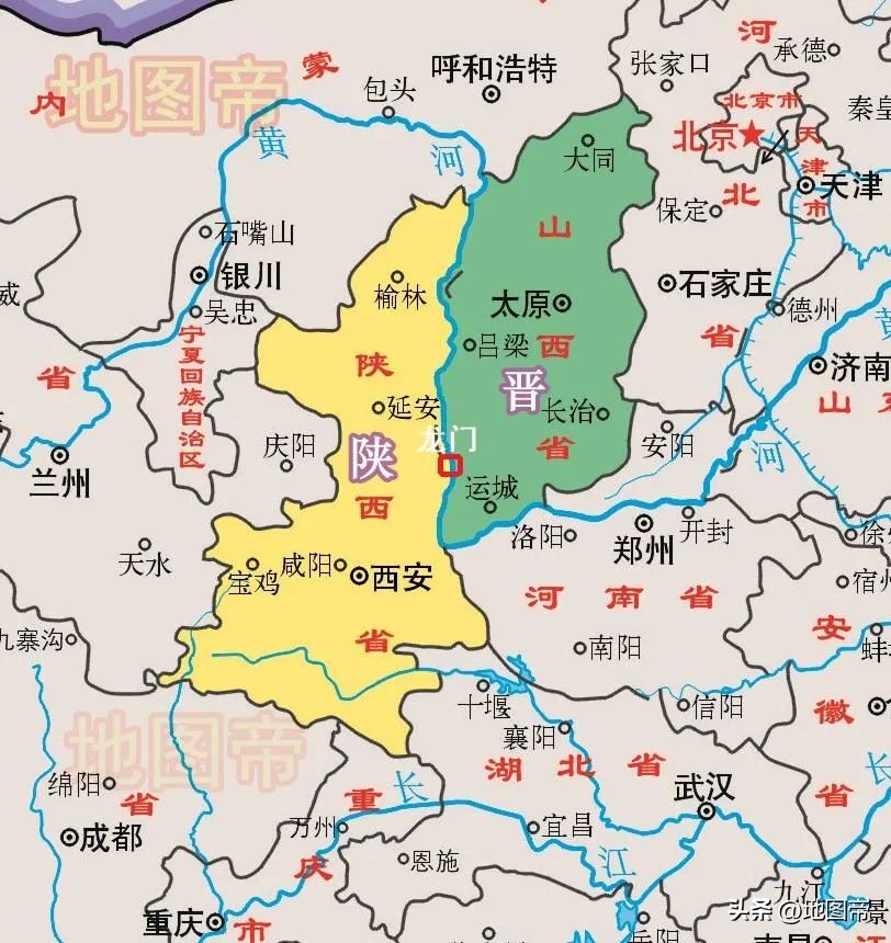 鲤鱼跳的这座龙门,有两个出处,一是洛阳伊阙,二是黄河陕西韩城与山西河津之间的龙门(禹门口),我们来看看黄河上的龙门。