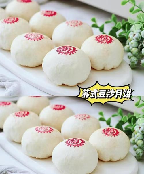2、苏式月饼:饼皮酥松分层,重油多糖,分甜咸两类,甜馅如玫瑰、百果,咸馅如鲜肉、虾仁。