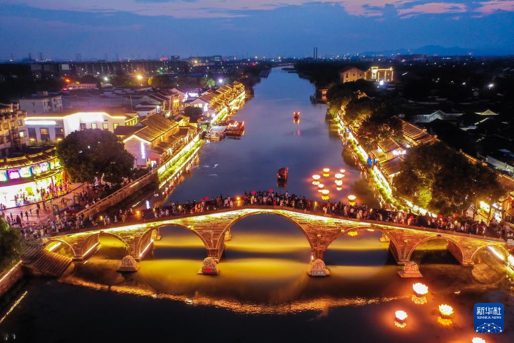 国庆中秋“双节”期间,浙江省杭州市临平区塘栖古镇推出“月满运河·梦栖塘栖”祈福之夜活动。游客们可以体验运河摇橹船夜游、赏运河花灯、广济桥赏月等特色活动,感受水乡古镇的运河雅韵。