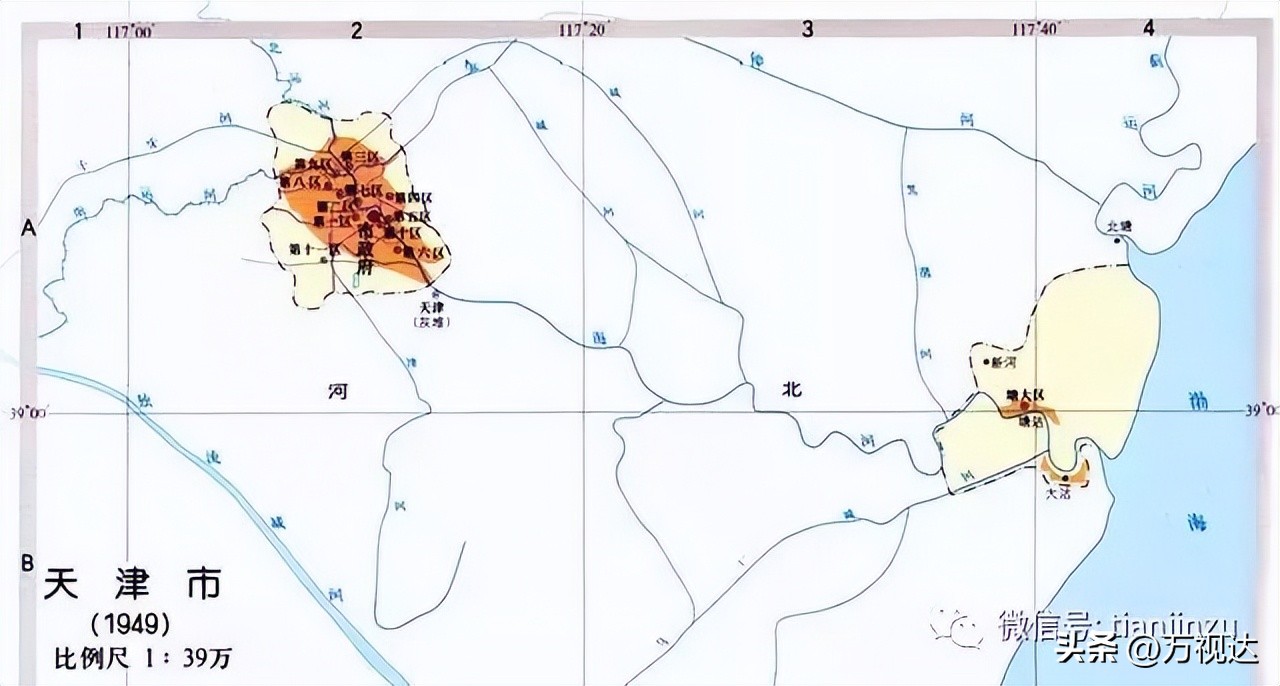 注意,此时天津的辖区范围仅为天津县包围的这一小部分市区。