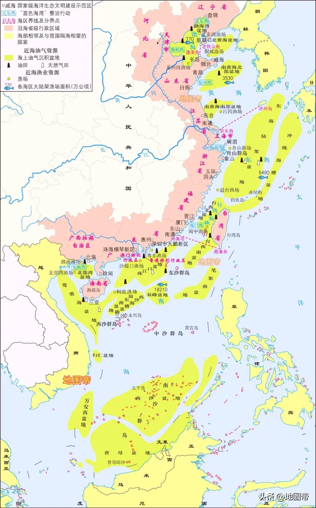渤海、黄海、东海、南海这四个邻海在深度上的巨大差异,主要是由它们所处的"地质构造背景"和"形成历史"决定的。