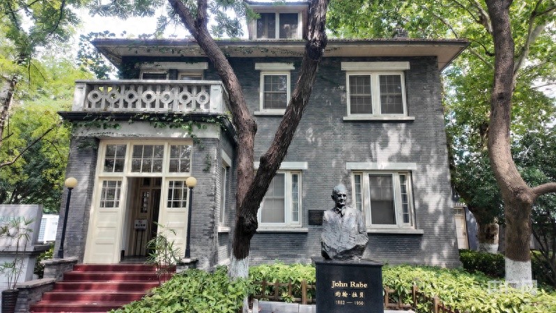 走进院落,时间仿佛慢了下来。约翰·拉贝的半身雕像立在庭院中央,神情肃穆,目光如炬。青砖墙上爬满藤蔓,阳光透过枝叶,落下斑驳光影。
