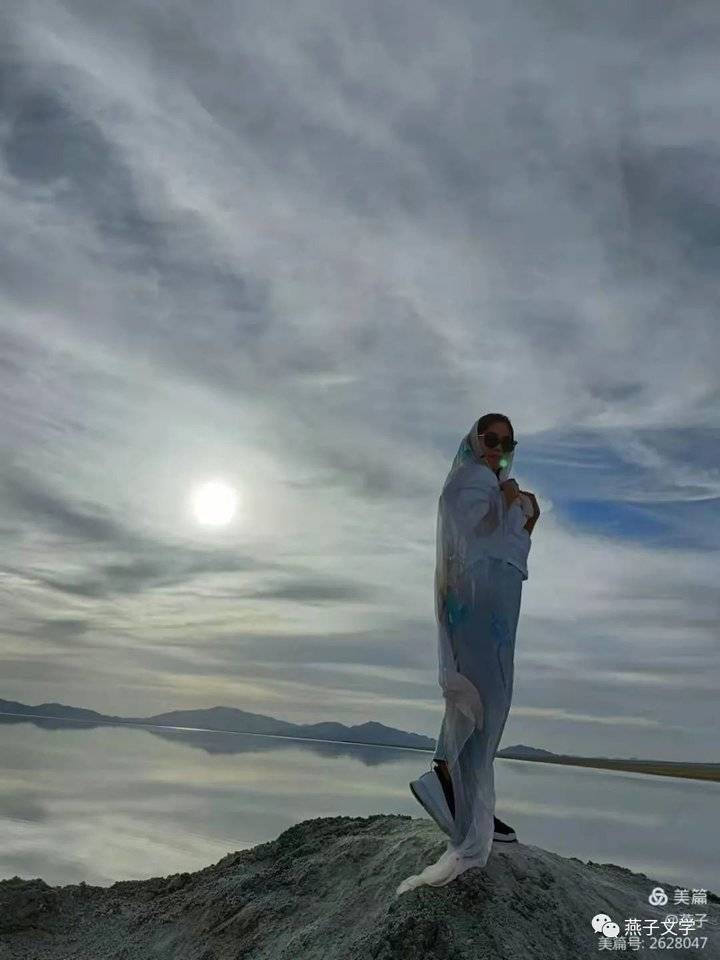 车行进之停车场,嘿!车还真不少来,还别说,私家车挺多,景点售票大厅好像是刚建的,临时的感觉。跟随人流通过检票口,开始自由活动,路中间的小火车似乎还挺忙碌,一趟趟穿梭在人流中间。这湖,给人的感觉,就是中间一段刚铺 修的路面,路两边的土堆依然,左边水浅显处,裸漏着白色的盐面,竟然好多人穿着鞋子塌在上面或漫步,或拍照,或蹲下用手挖盐。右边的湖面深些,由于几近黄昏,夕阳的光芒洒在宽阔的湖面上,并没有想象中的翡翠色。