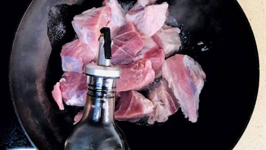 起锅烧油,油温烧至7-8成熟倒入羊肉,这里大家需要注意,倒入的羊肉务必要沥干水分,否则羊肉中的水分会融入锅中,导致羊肉的口感发生改变。接着用大火进行翻炒,直到羊肉断生。羊肉断生后加入红酒,红酒没过羊肉表面即可,然后加入1勺生抽、1勺蚝油、1勺料酒,适量白糖,接着大火翻炒均匀,然后加入适量清水,盖上盖子转中小火炖30-40分钟。