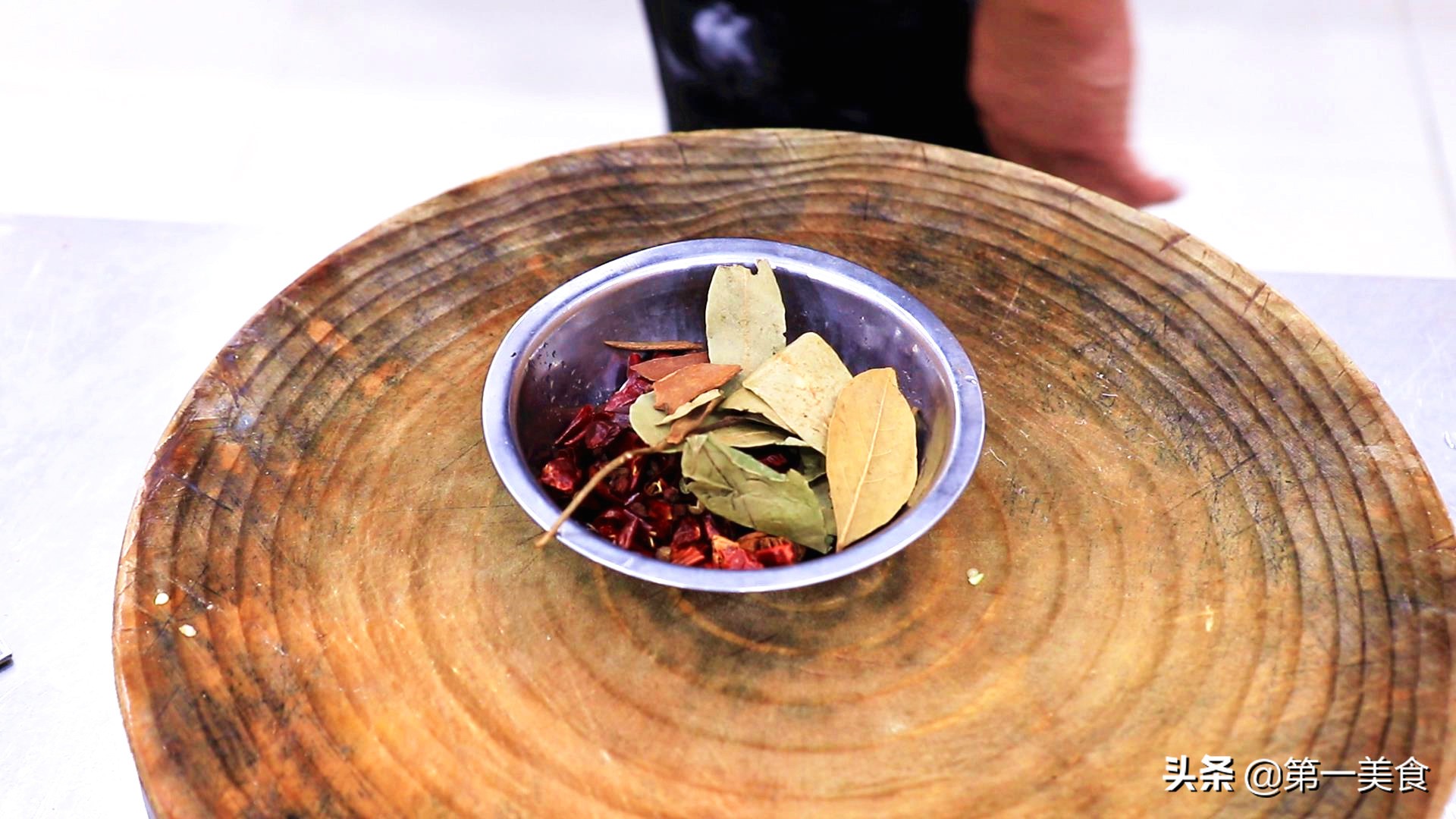 3 . 再准备一个小碗,放入几粒八角,一把干辣椒,一小把花椒,几片香叶,一节桂皮放到碗里备用