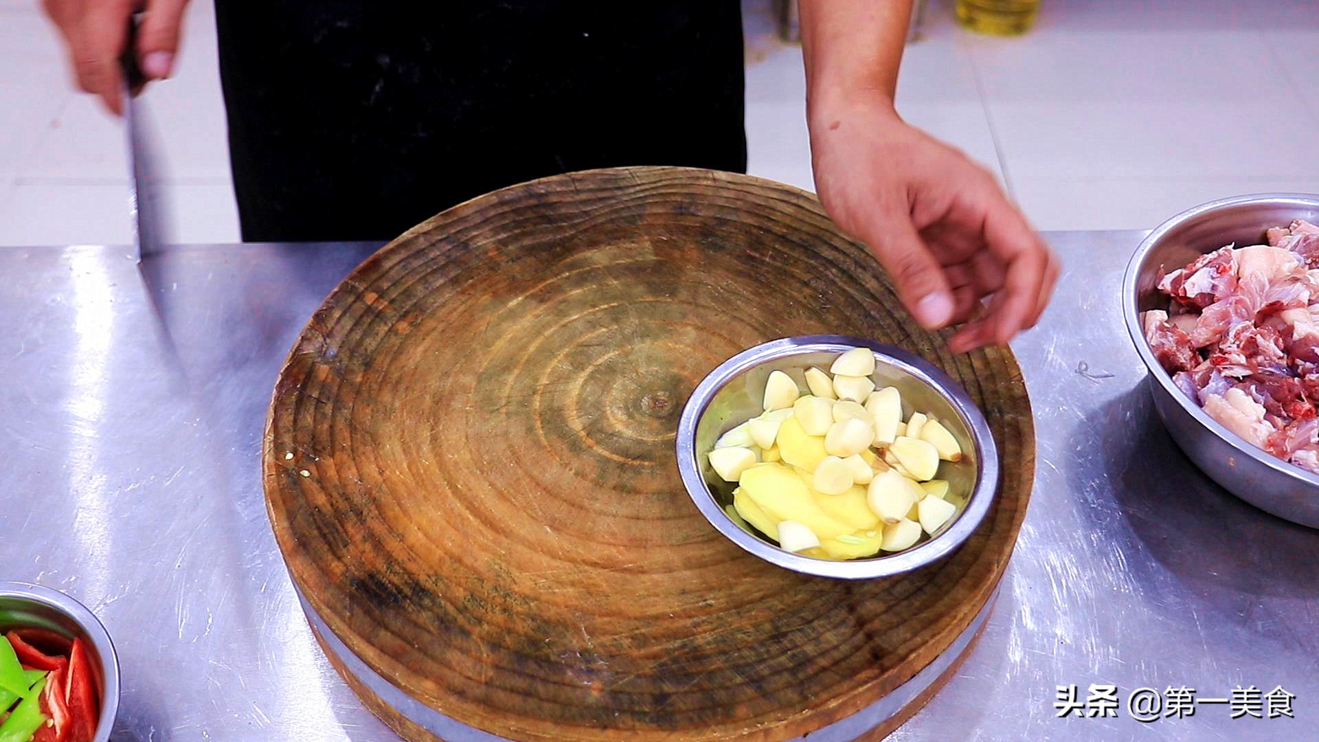1 . 一只宰杀干净的肥鹅,给它剪掉脚趾,并把鹅肉剁成均匀小块