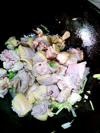 5. 鹅肉倒下去爆炒2分钟,加入少许酱油,料酒