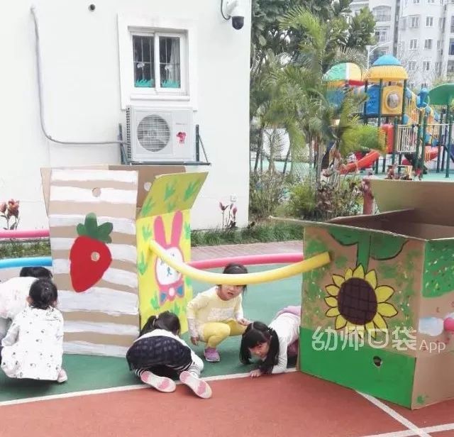如果幼儿园有这种木制的带网的框,随意拼搭起来,孩子既能在上面走,也能在下面匍匐。