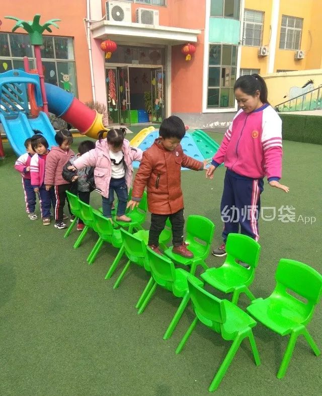 简单点,拿几把幼儿园的椅子,然后交错组合,这样的独木桥也很好玩哦。