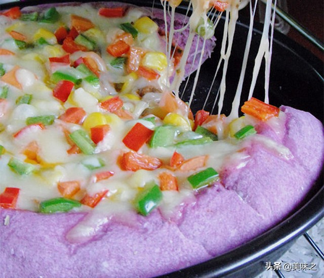 12、放入烤箱中上层,200度,烤15分钟,取出,铺上奶酪。
