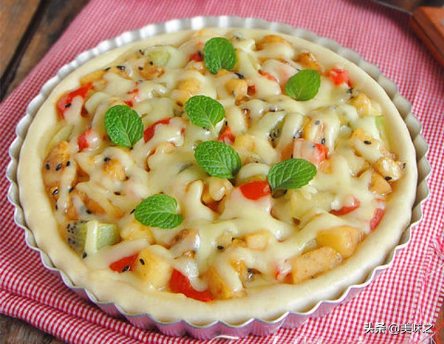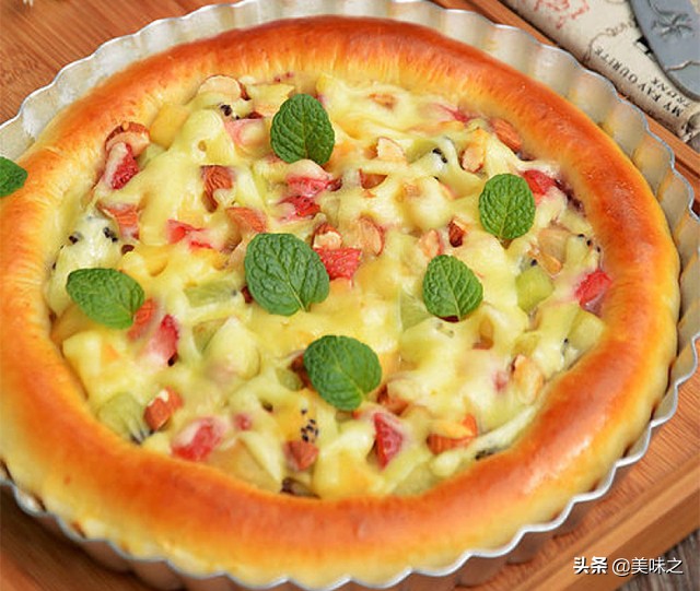 14、铺上一层水果,在铺上一层马苏,放入预热好的烤箱,烤好后即可食用。