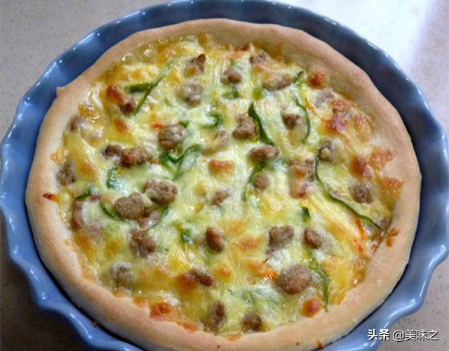 8、烤箱180预热10分钟,将披萨胚入烤箱 180度 中层 25分钟。