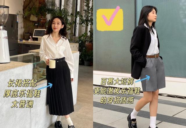 工装裤配德训鞋,裤脚离鞋面2cm,刚好扫过鞋舌,腿长一米八;西装裤配方头鞋,裤腿要比鞋头宽1.5倍,走路带风;百慕大短裤配乐福鞋,裤长停在大腿最细处,露出膝盖,冬天加打底裤也不丑。
