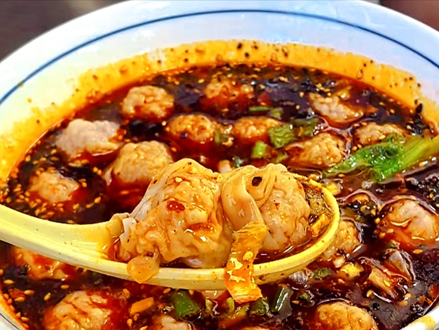 红油抄手讲究现包现煮。