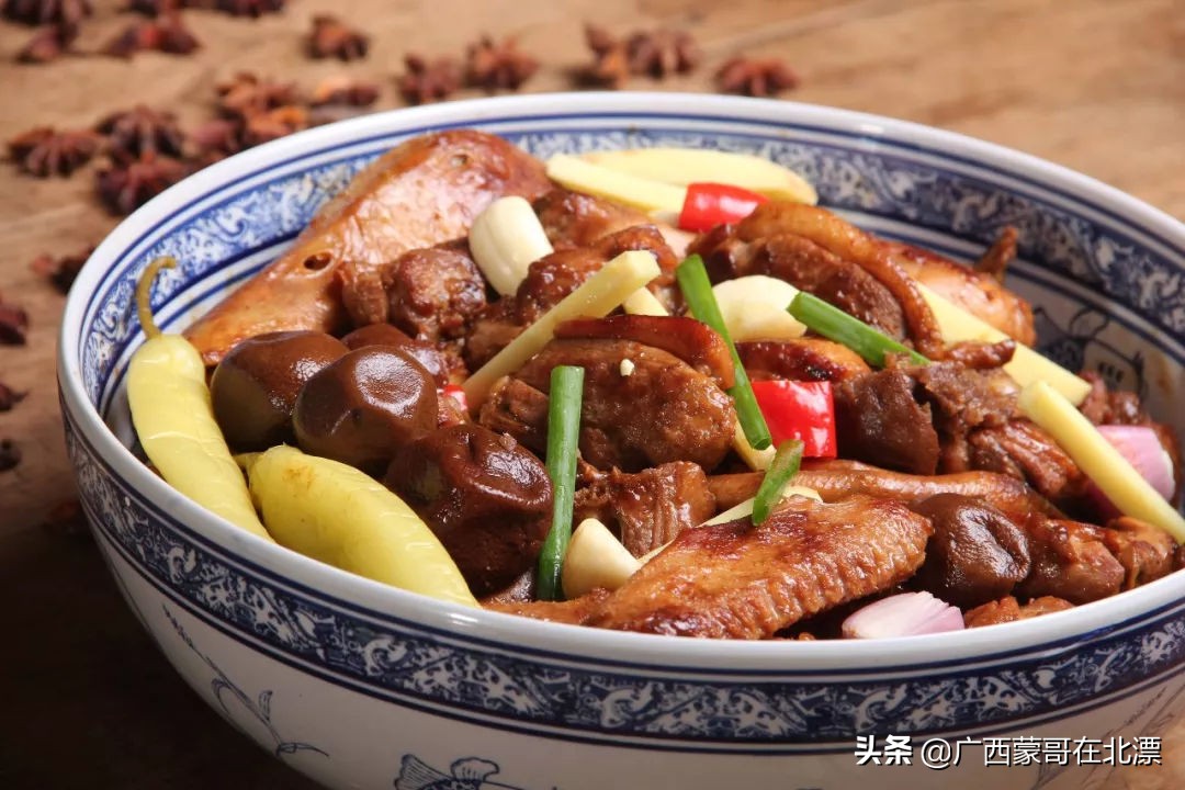 我们也吃鸡呢,像白斩鸡、纸包鸡、手撕鸡、盐焗鸡太常见了,特色的有桂林香芋焖鸡、柳州螺蛳鸡、百色十里荷香鸡。
