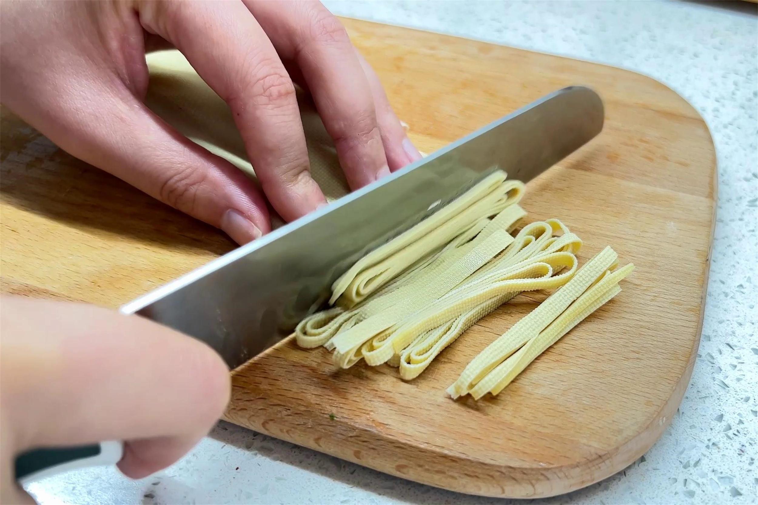 2、豆腐皮切成细丝,金针菇撕成小块,切蒜末和小米椒,肉丸对半切开方便煮透,再准备些海鲜丸子。