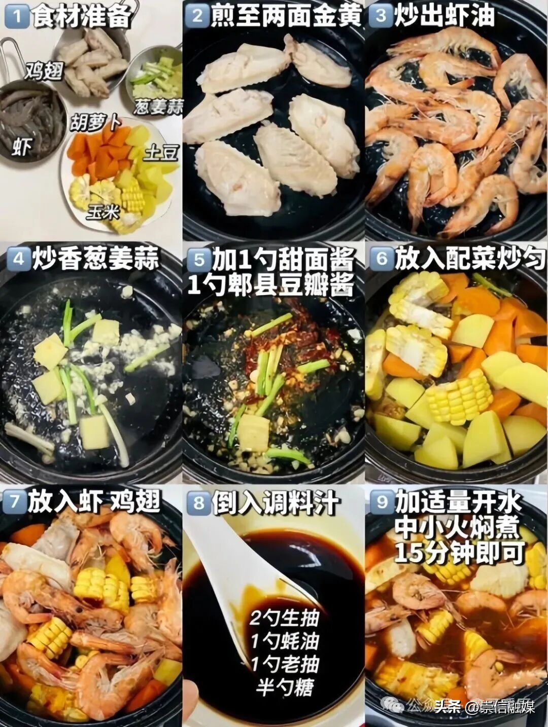 食材:大虾,鸡翅中,玉米,胡萝卜,土豆,葱姜蒜