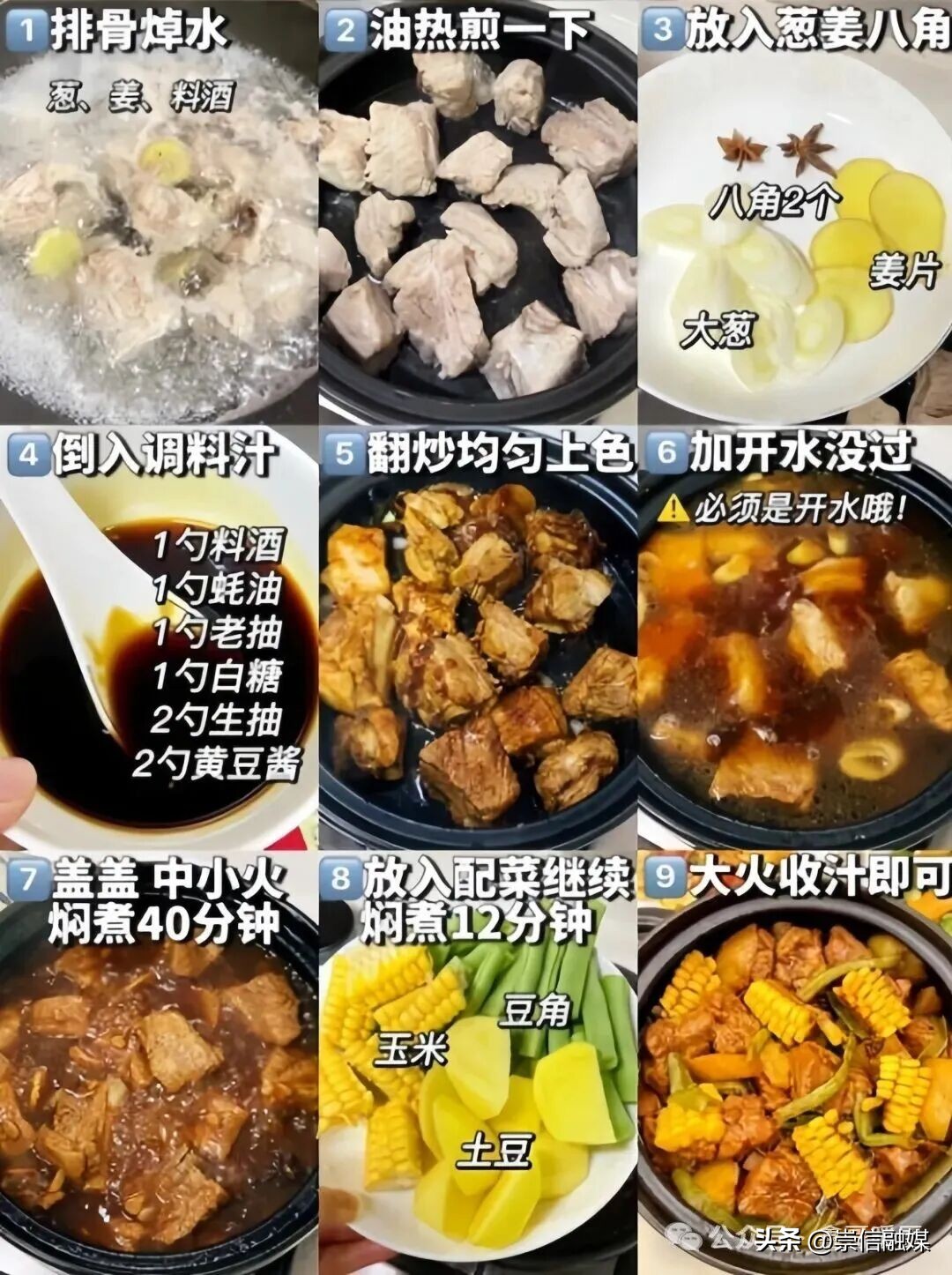 食材:排骨,玉米,豆角,土豆,葱姜,八角