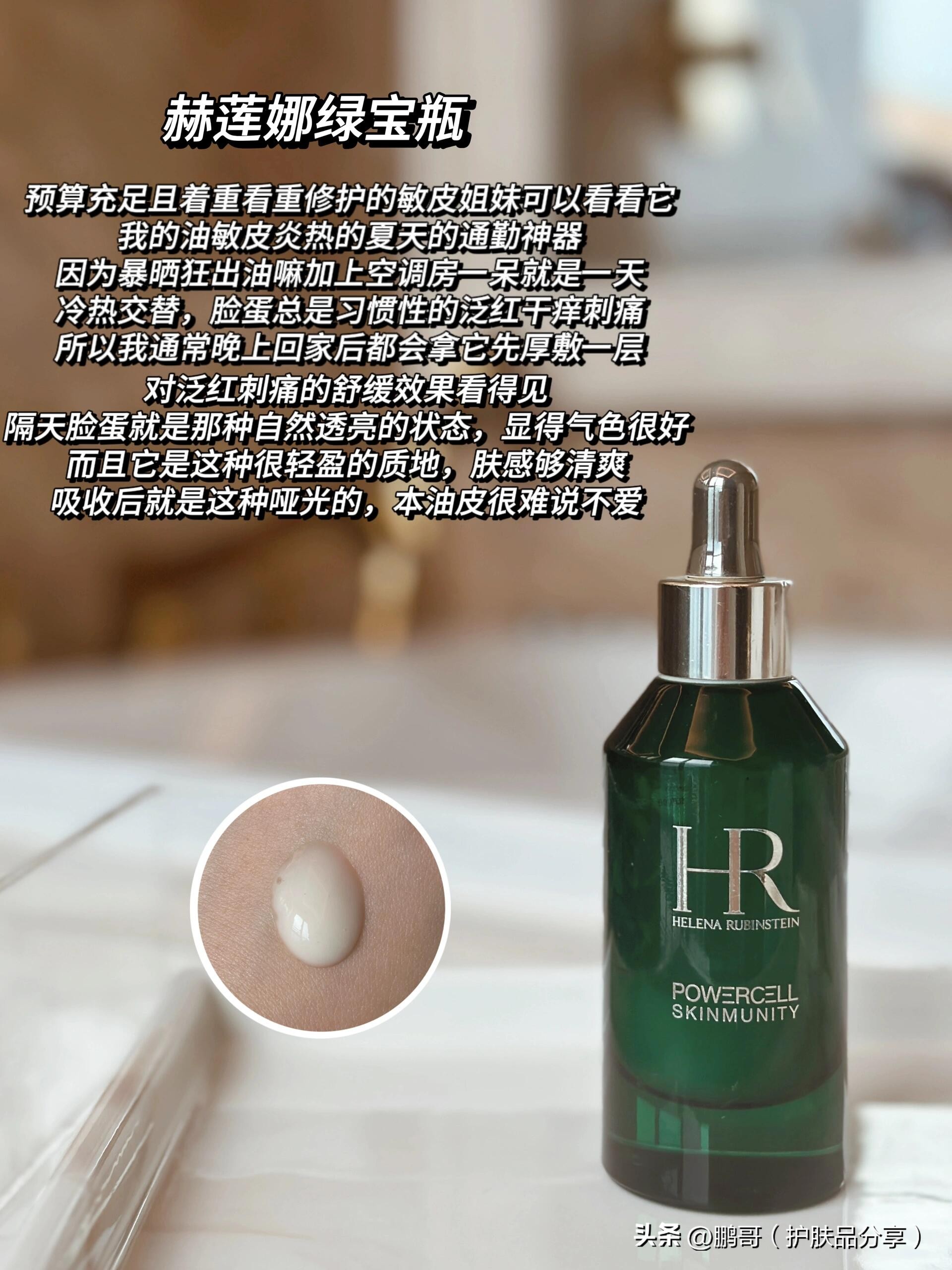 第四款:赫莲娜绿宝瓶精华屏障脆弱想要长线舒缓修护的姐妹看过来,属于本敏皮的定海神针啦,稳得一批。海茴香愈伤组织提取物可以深入皮肤底层抗氧修护,同时还有红没药醇和依克多因2大修护强辅,放大海茴香功效的同时,加固皮肤抵御刺激的能力。