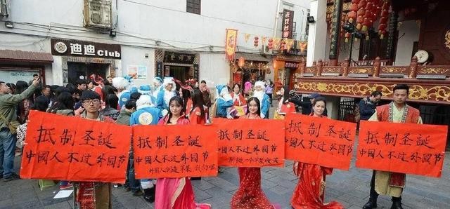 说到网上有人抵制洋节,其实影响真有限。抵制的人从来不过节,过节的人也不搭理这套。大家围观一下罢了,很快都过去。和以前争论“要不要过圣诞节”的紧绷劲头比,现在多了点轻松。网上段子手把圣诞节、洪秀全、驻马店乱炖,“耶稣降生驻马店”的调侃一传十、十传百。把一个神神秘秘的洋节变成了普通的笑谈,不少上班族、退休人也乐于围观:“你们年轻人爱咋玩咋玩,我们看看也解闷。”这一乐,圣诞节失去了以前那种“隔着远洋的神圣感”,就是图一乐。