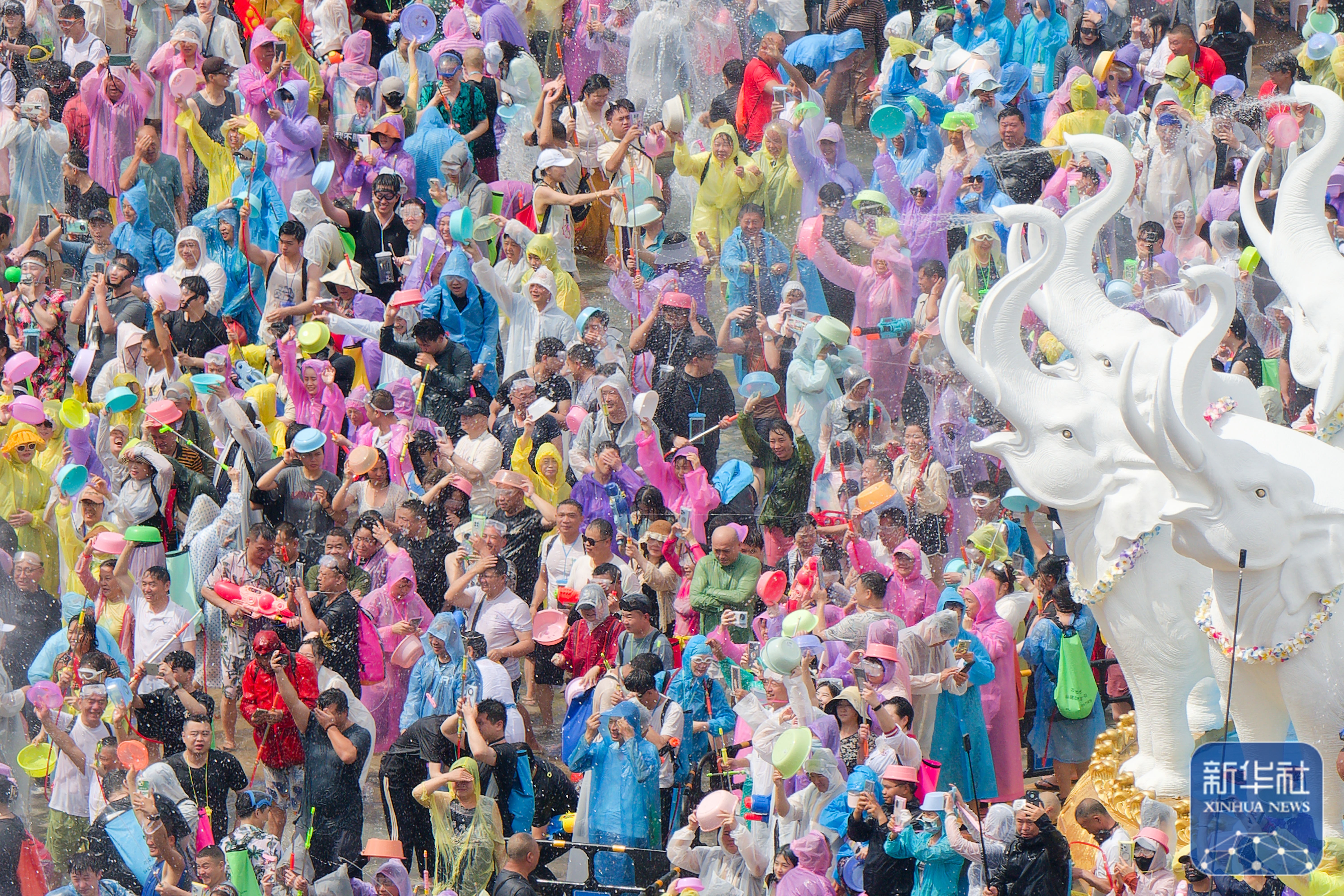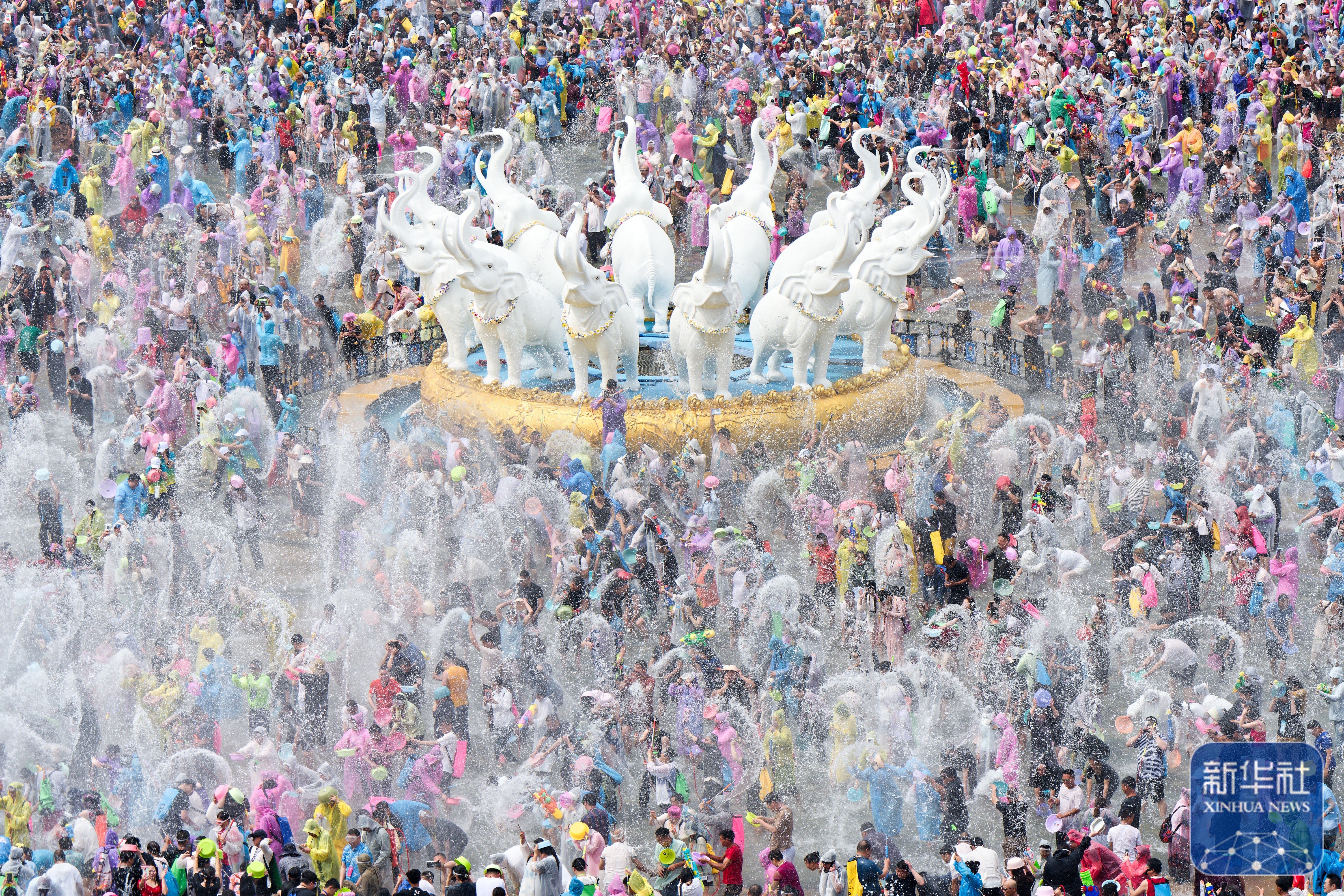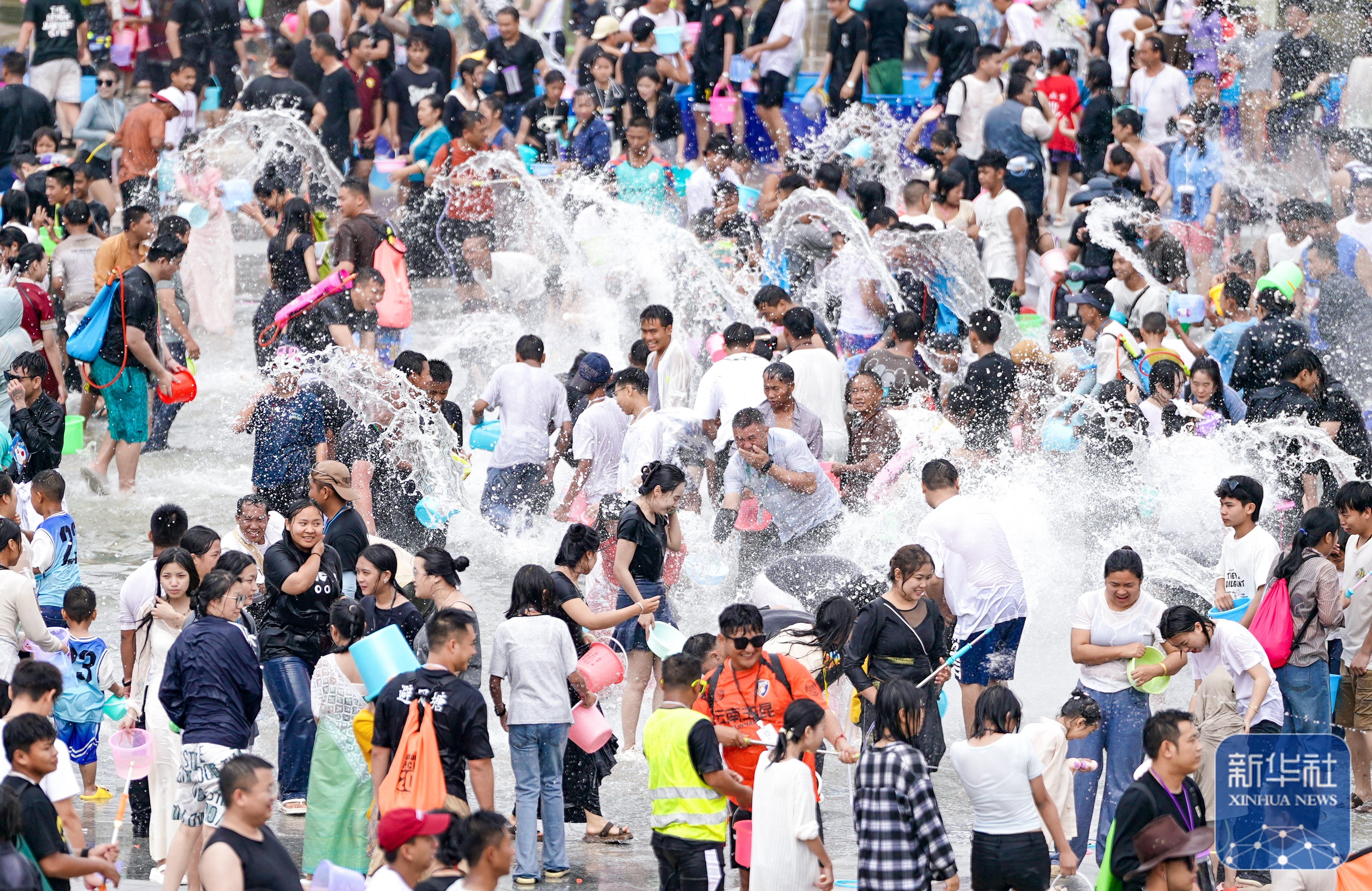 当日,云南多地举行泼水节活动,各族群众和游客用相互泼水的方式互送祝福,庆祝泼水节。