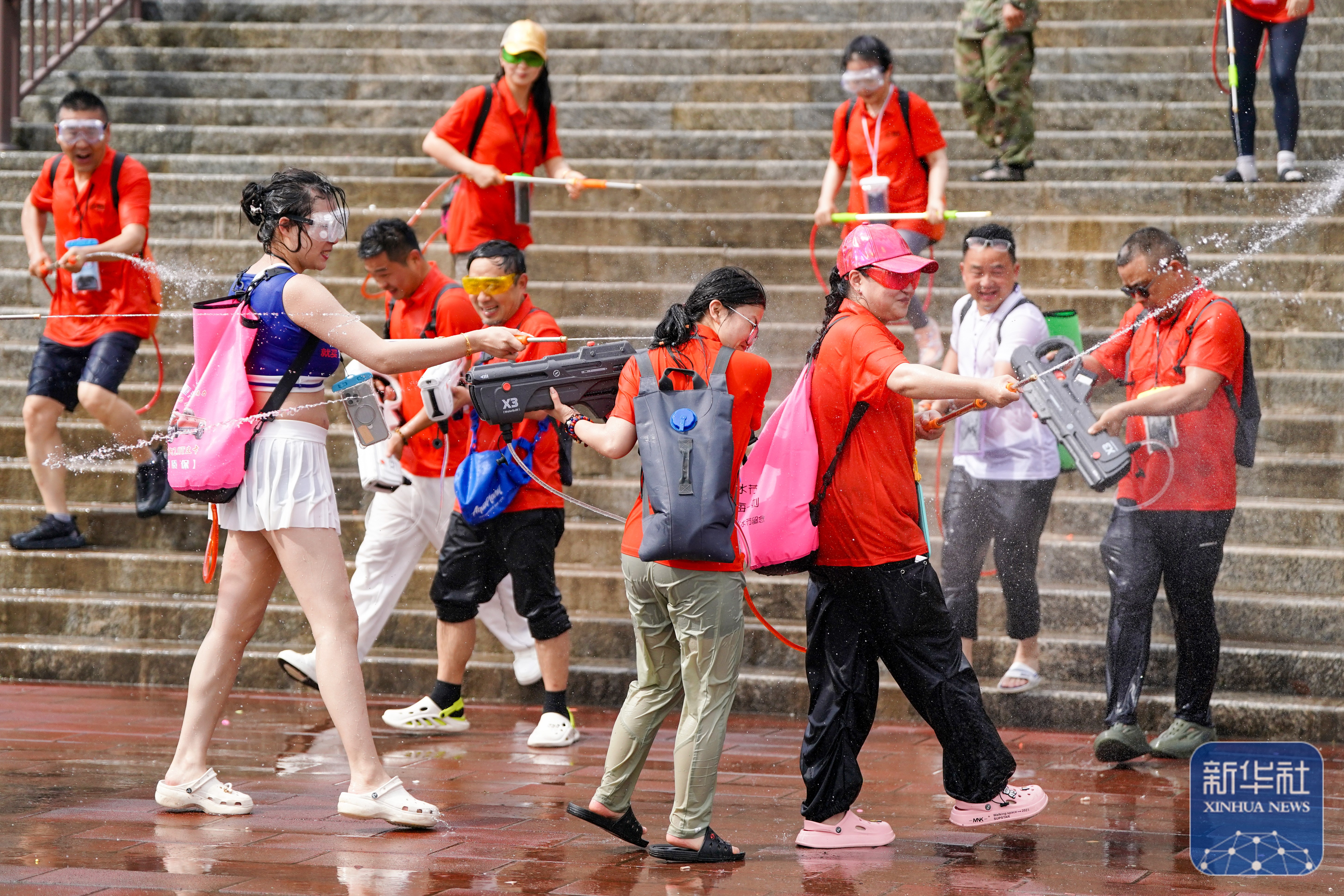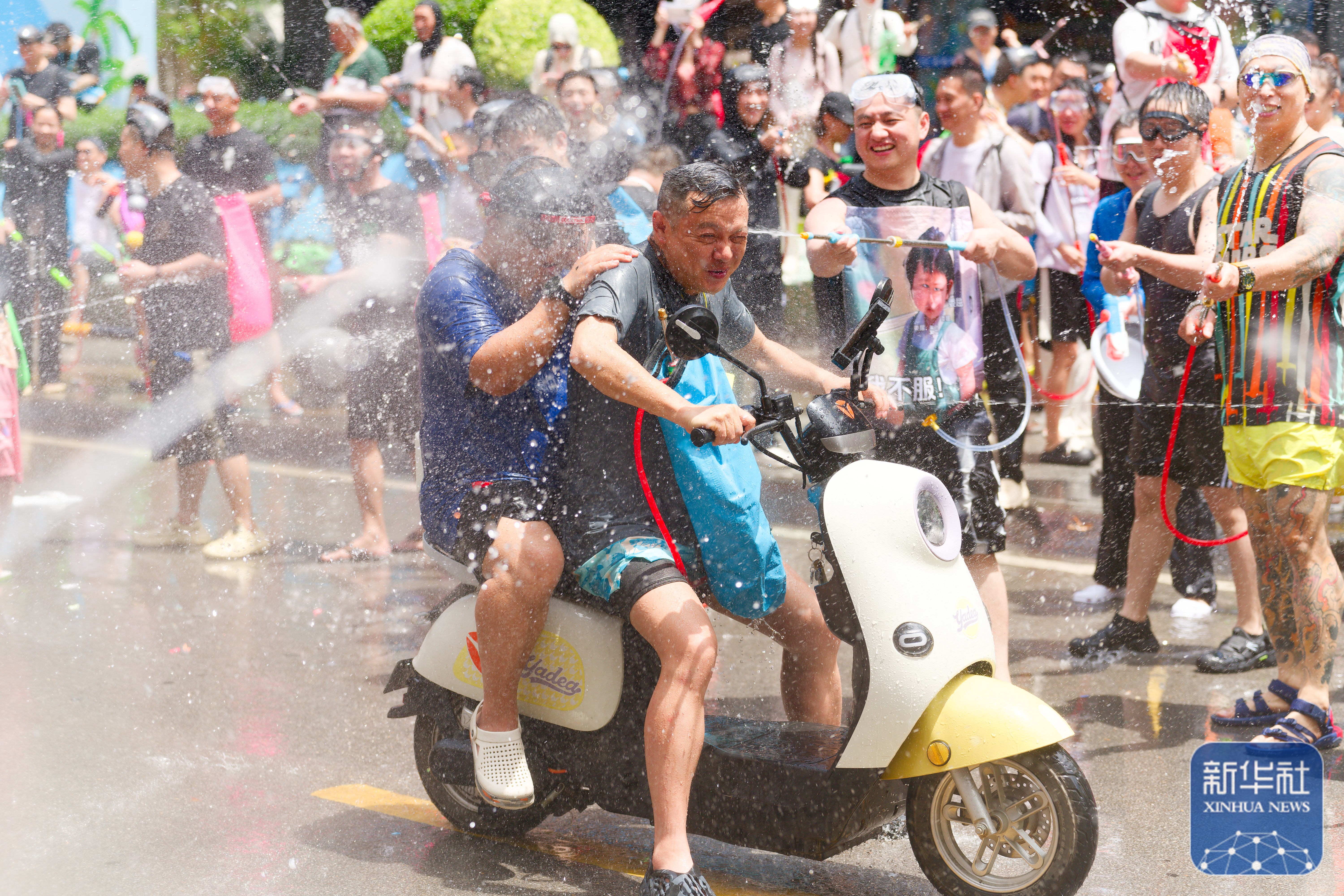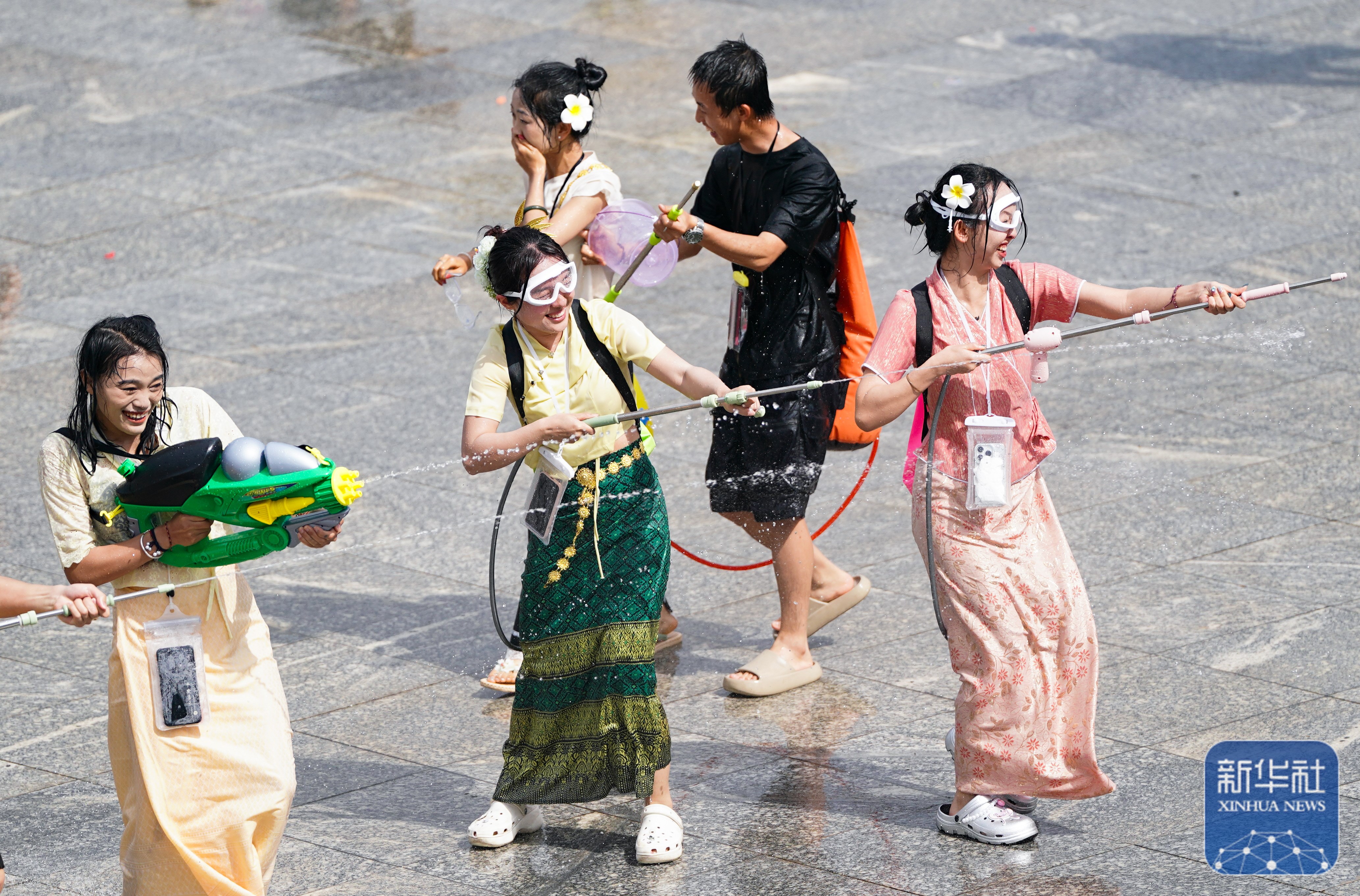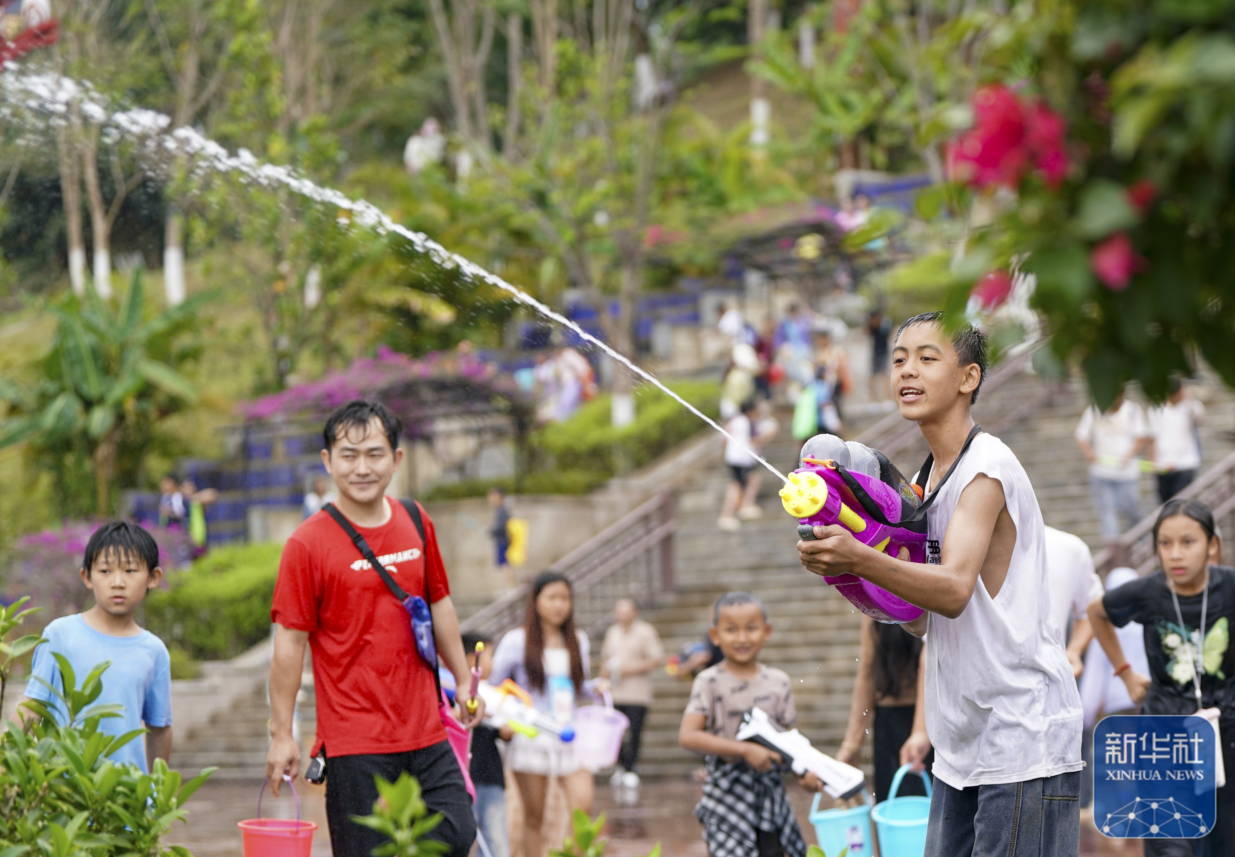 当日,云南多地举行泼水节活动,各族群众和游客用相互泼水的方式互送祝福,庆祝泼水节。