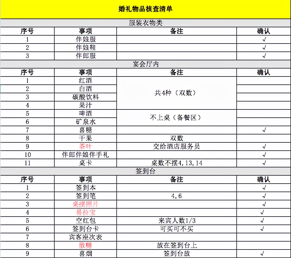 晴天的婚礼物品采买清单。图源:受访者供图