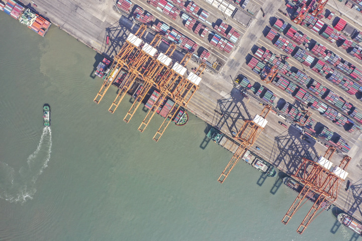 这是广西钦州港集装箱码头(2021年1月14日摄,无人机照片)。新华社记者曹祎铭摄