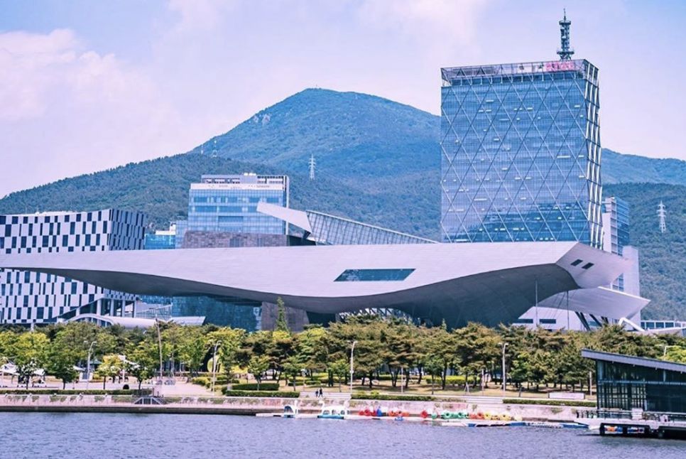 2011年9月,为釜山电影节设计、耗资1.5亿美元建设的釜山电影中心正式开放,其中包括6个放映厅和一间只在电影节期间才开放的户外礼堂。远远望去,整个建筑似一只振翅欲飞的鸟,正欲迎着晨光向远方翱翔。