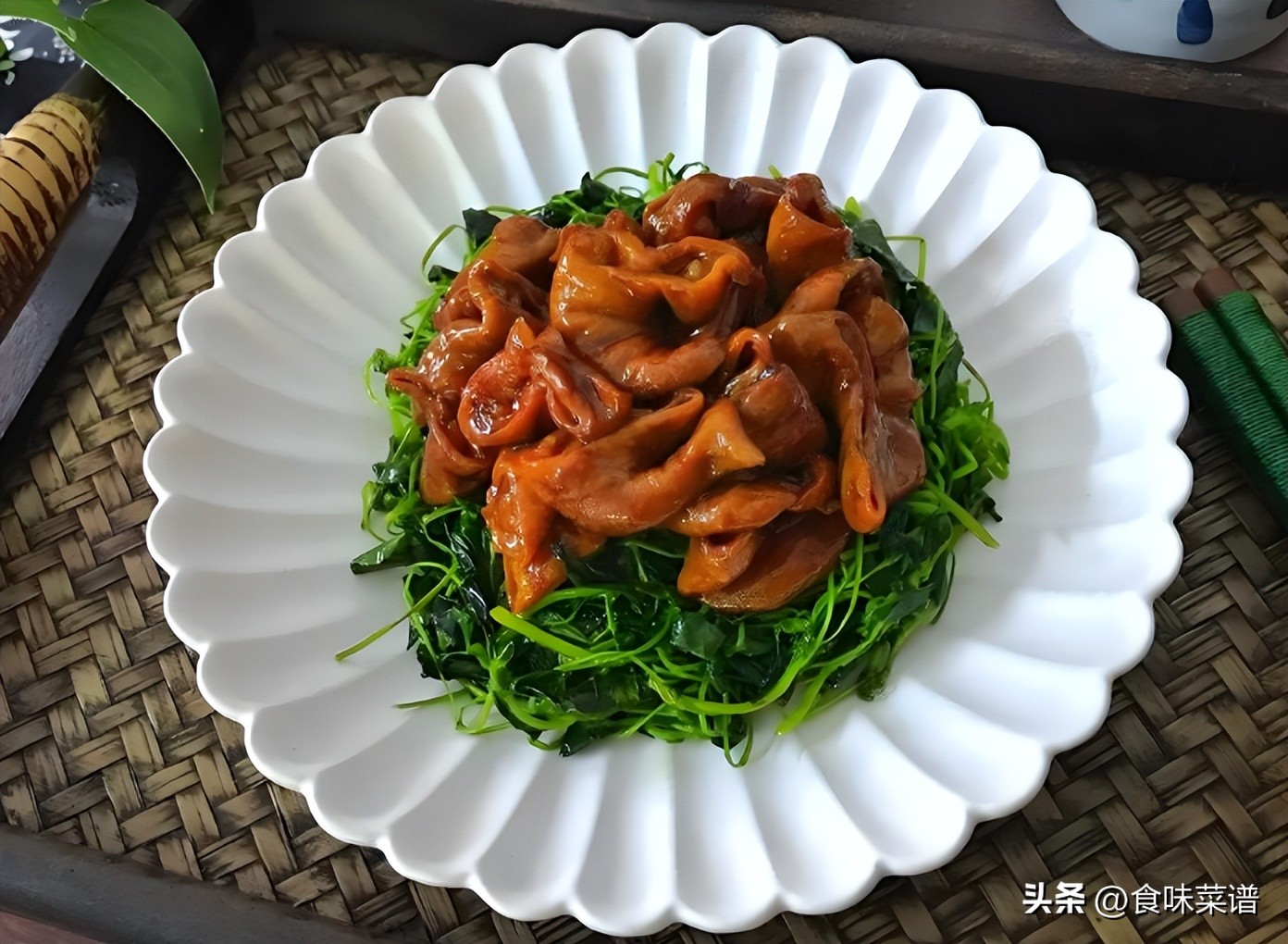 这道菜将草头的清爽与猪大肠的醇厚巧妙结合。草头取最嫩的尖部,洗净后快速煸炒,出锅前加少许白酒、盐、糖提味,保留草头的鲜嫩与清香。