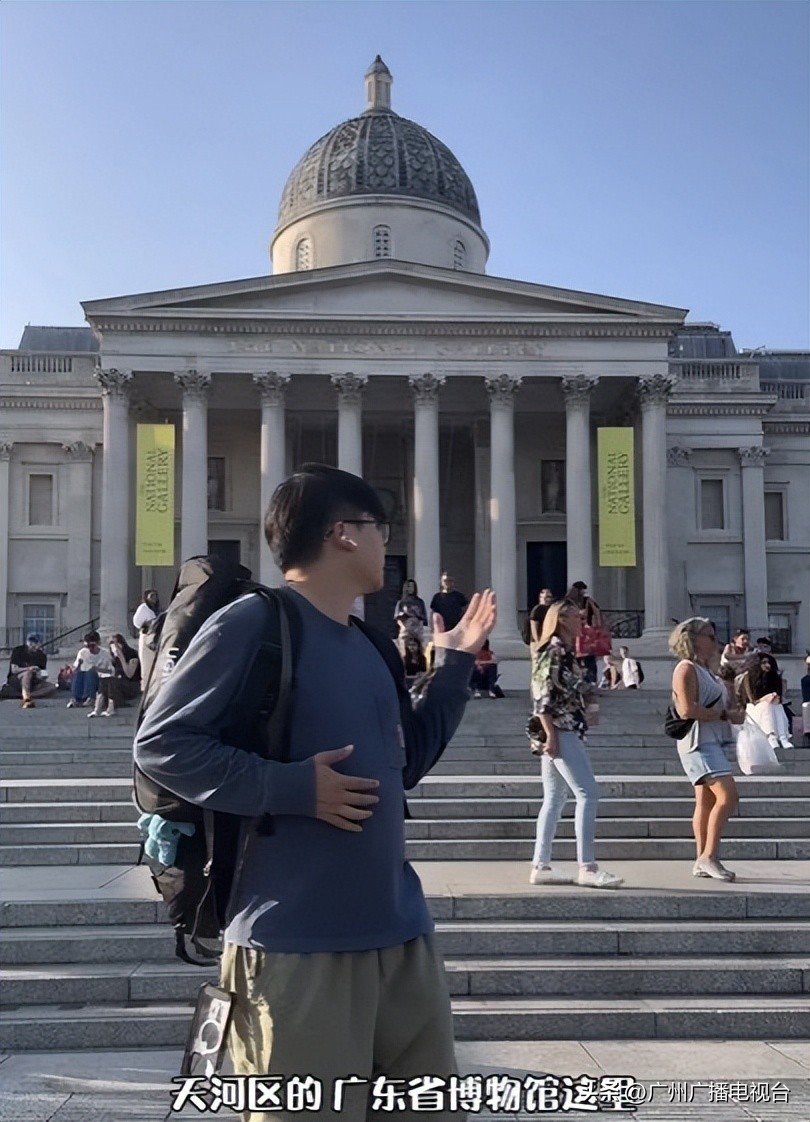 在 Danube 河畔、巴塞罗那圣家堂前,海外华侨华人手持第十五届全国运动会吉祥物,用英语、德语、西班牙语等多语种,为广州的知名景点打Call宣传。